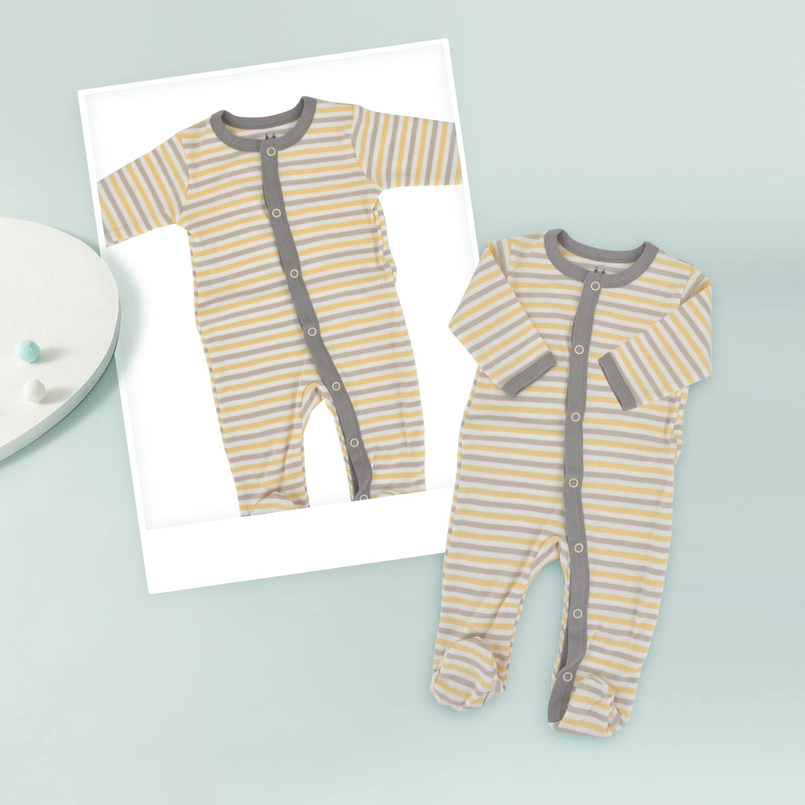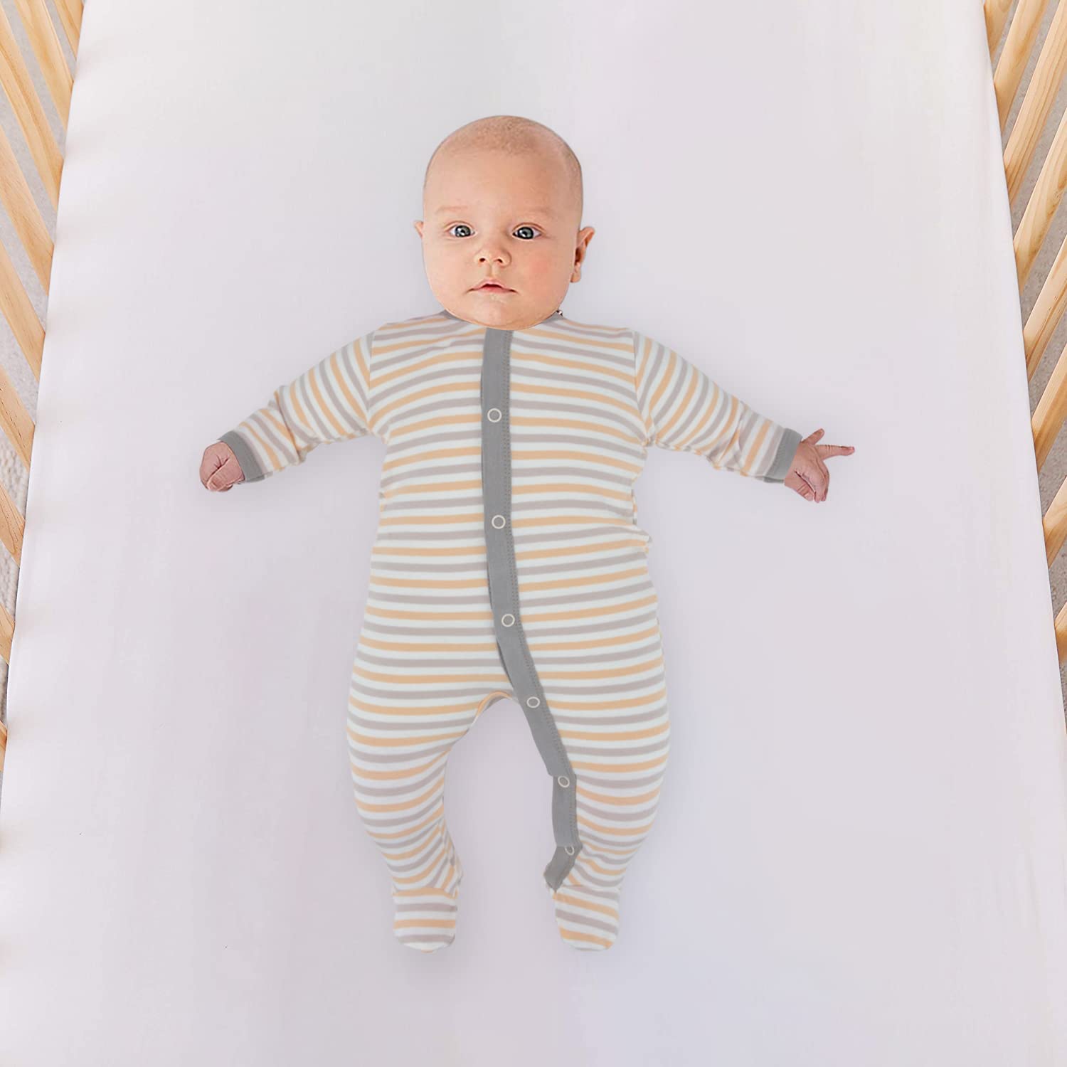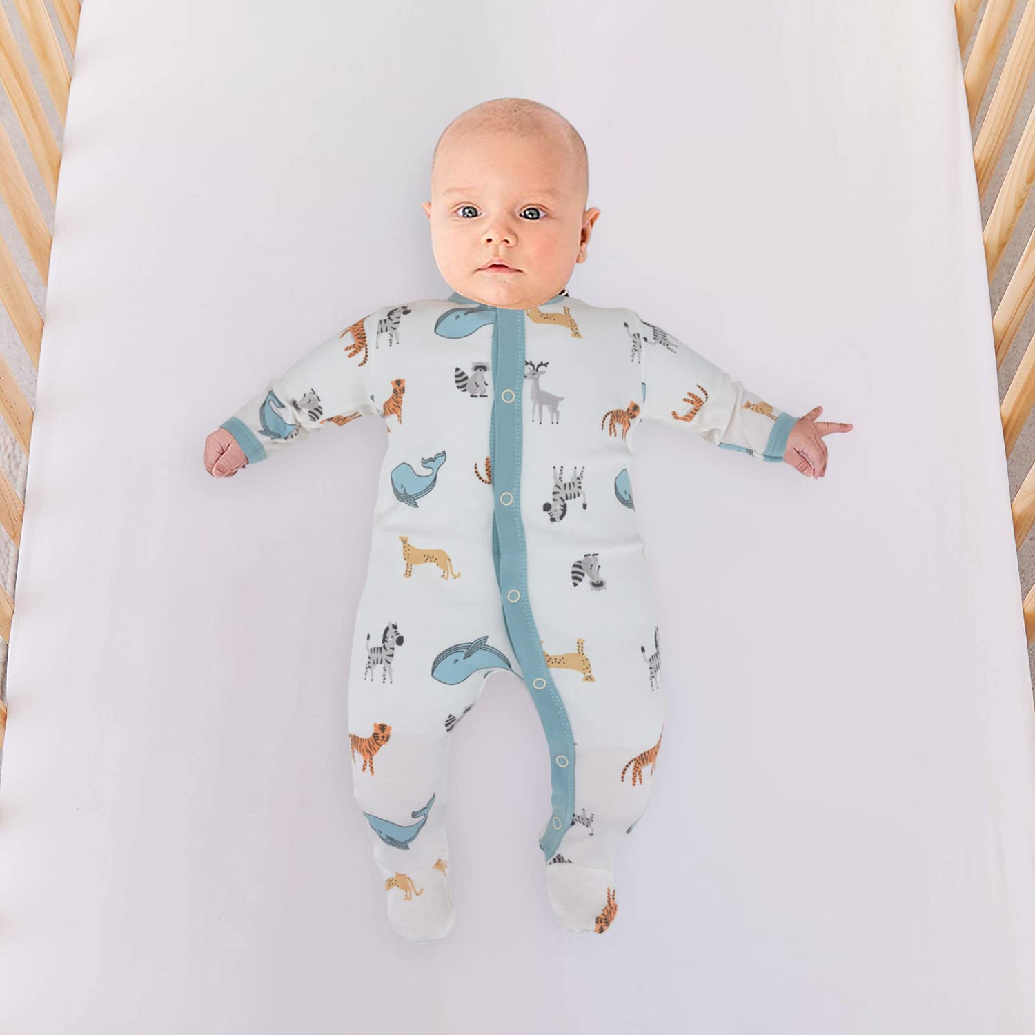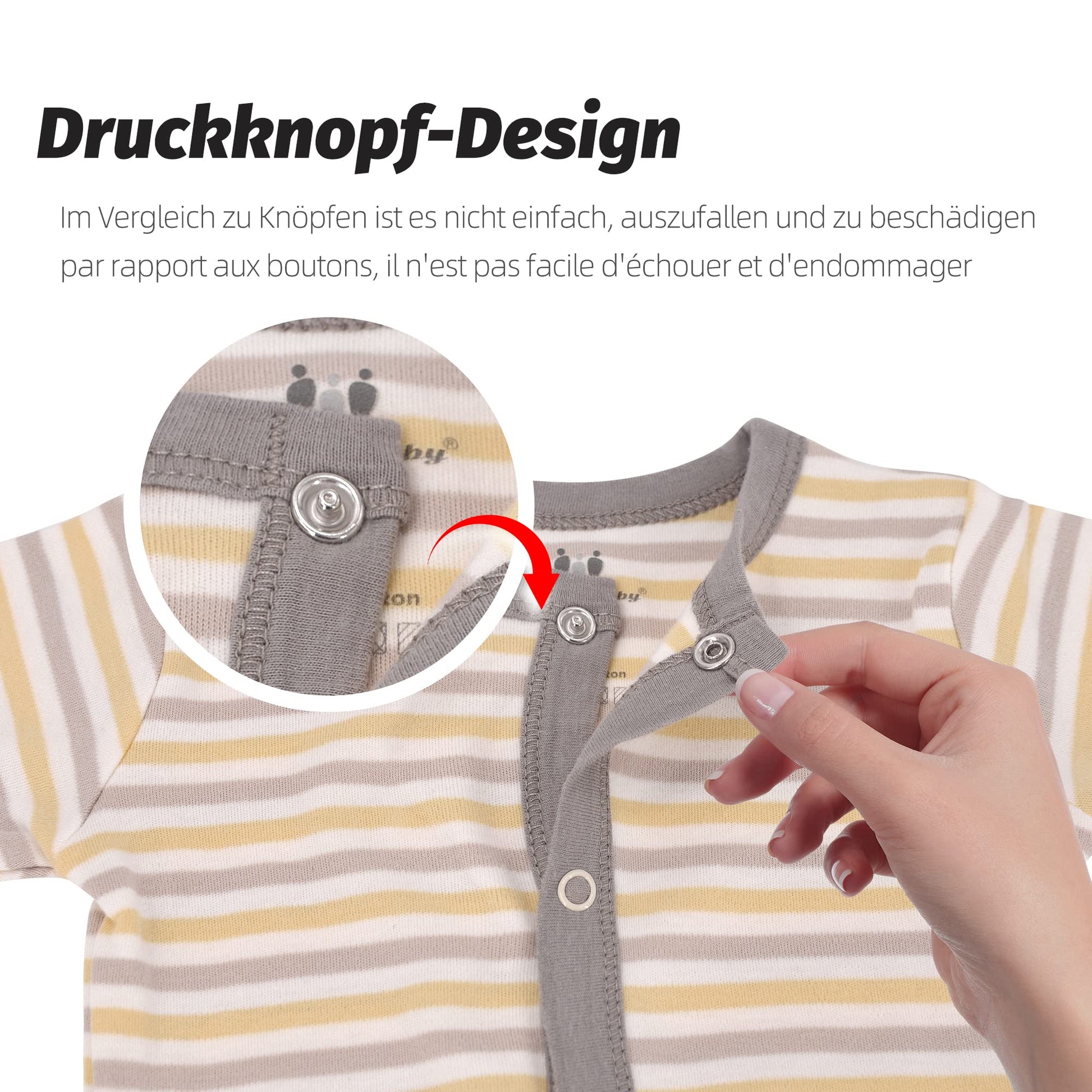 3PCS Baby Schlafstrampler Babychlafanzug Babyschlafsack Baumwolle mit Füßen mit knöpfen Gr. 56 62 68 für Junge Mädchen Neugborenen