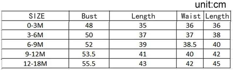 0-3M Strampler Länge: 35 Brust: 48 Taille: 36 Hosenlänge: 36 Empfohlenes Alter: 0-3 Monate
