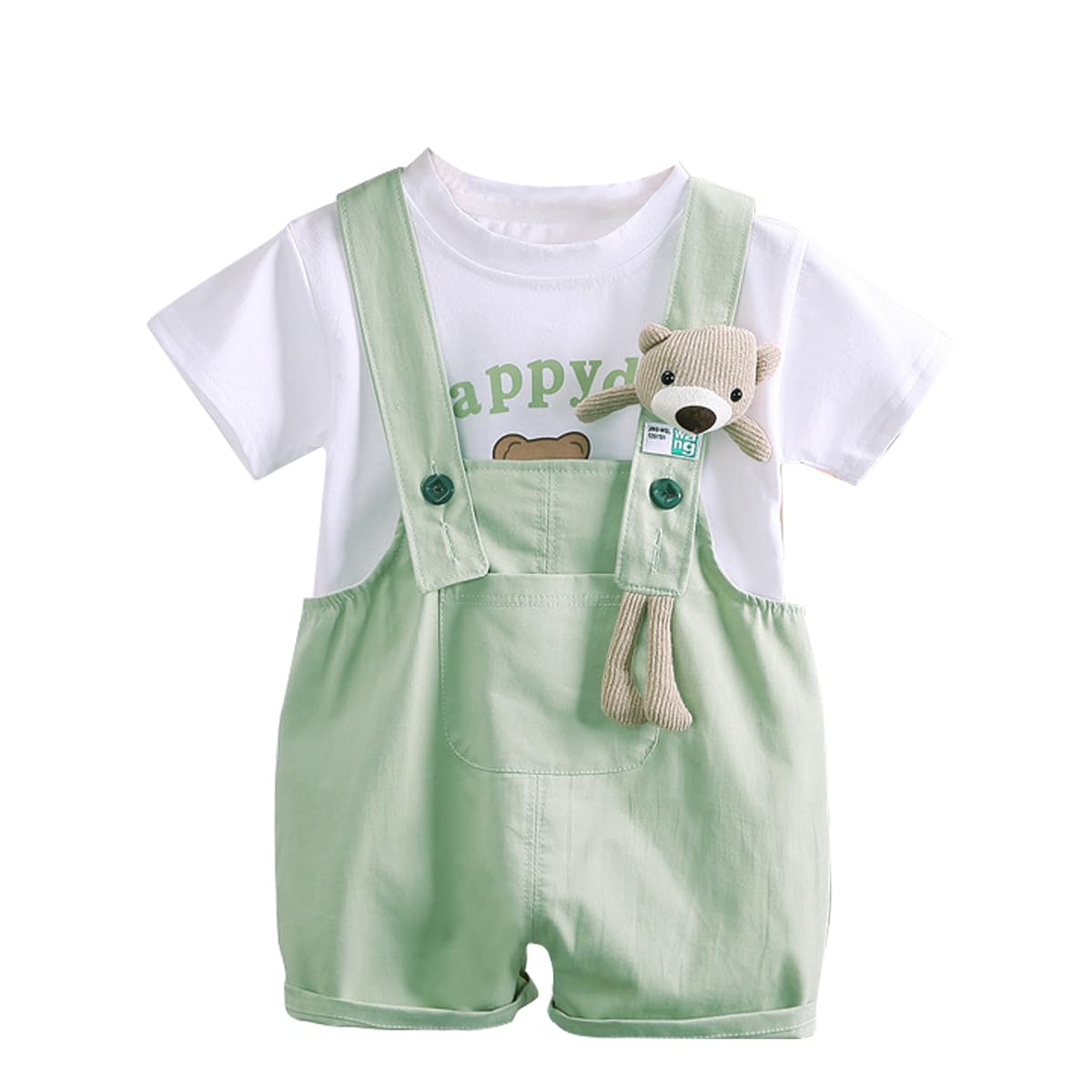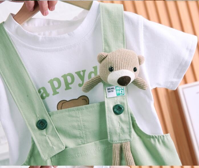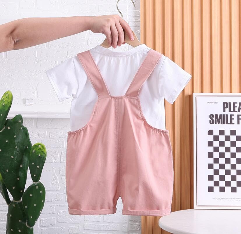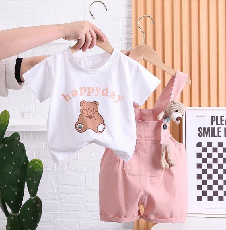 • 💖 Kleinkinder Kleidung Set: Baby kurzärm T-Shirt Oberteil + Bären Jeans Latzhose Shorts, Kurzärm T-Shirts und Jeans Latzhose shorts kann zusammen oder allein mit anderen Kleidungsstücken getragen werden, um mehr Outfits zu kreieren!