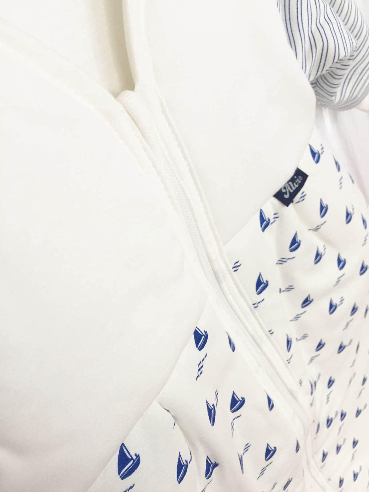 • Material: The Alvi baby sleeping bag is made from 100% combed cotton, filling 100% polyester. The lightweight sleeping bag can be washed at up to 60°C for optimum hygiene. Can be tumble-dried at a low temperature