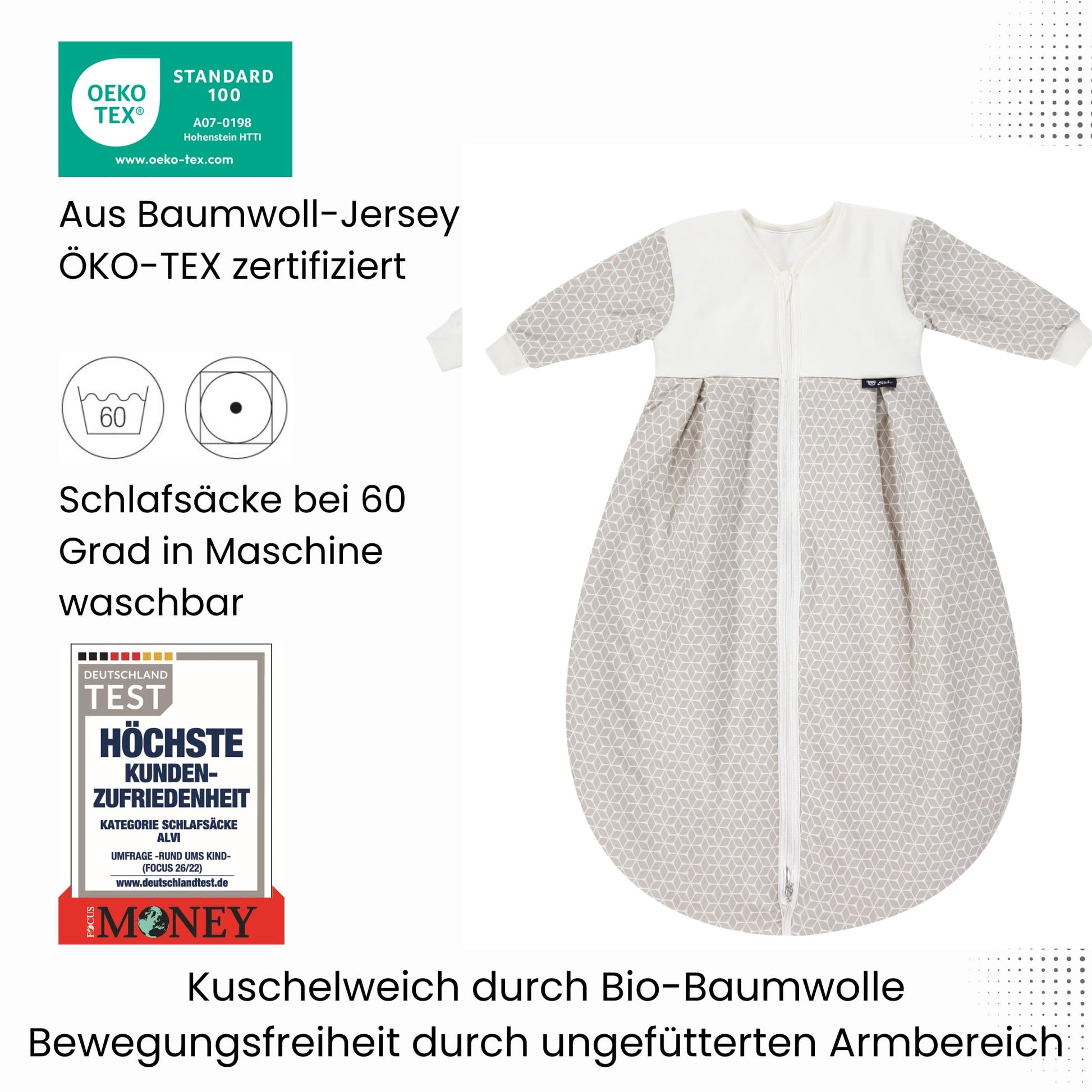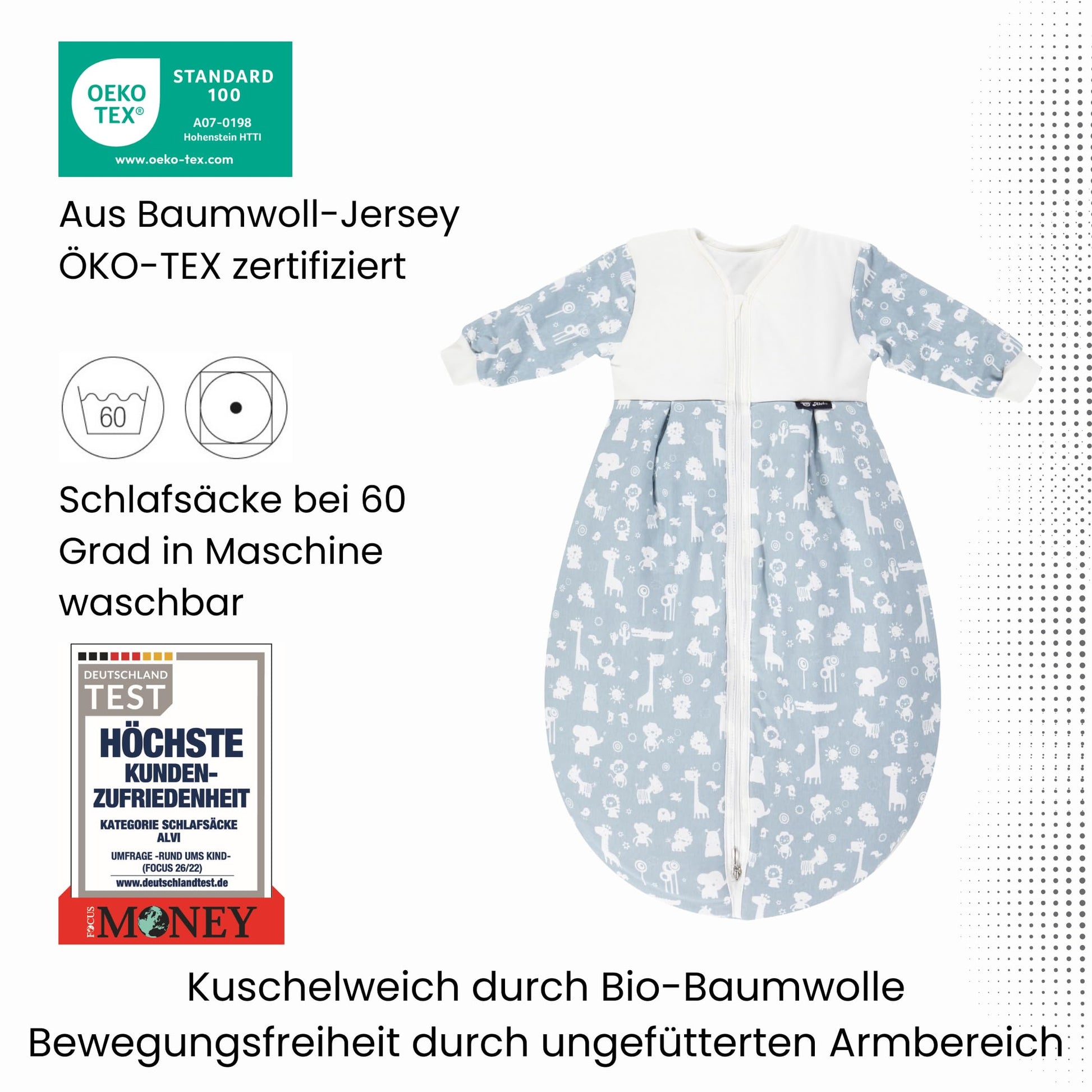 • The Mäxchen children's thermal sleeping bag with sleeves (sleeves cannot be removed) made of cuddly cotton jersey provides optimum warmth and offers plenty of freedom to wriggle