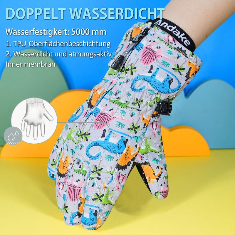 - Warm gloves for children: Andake children’s ski gloves have excellent warmth and are filled with 3M Thinsulate cotton. Compared to normal cotton, 3M Thinsulate cotton is much warmer and lighter.