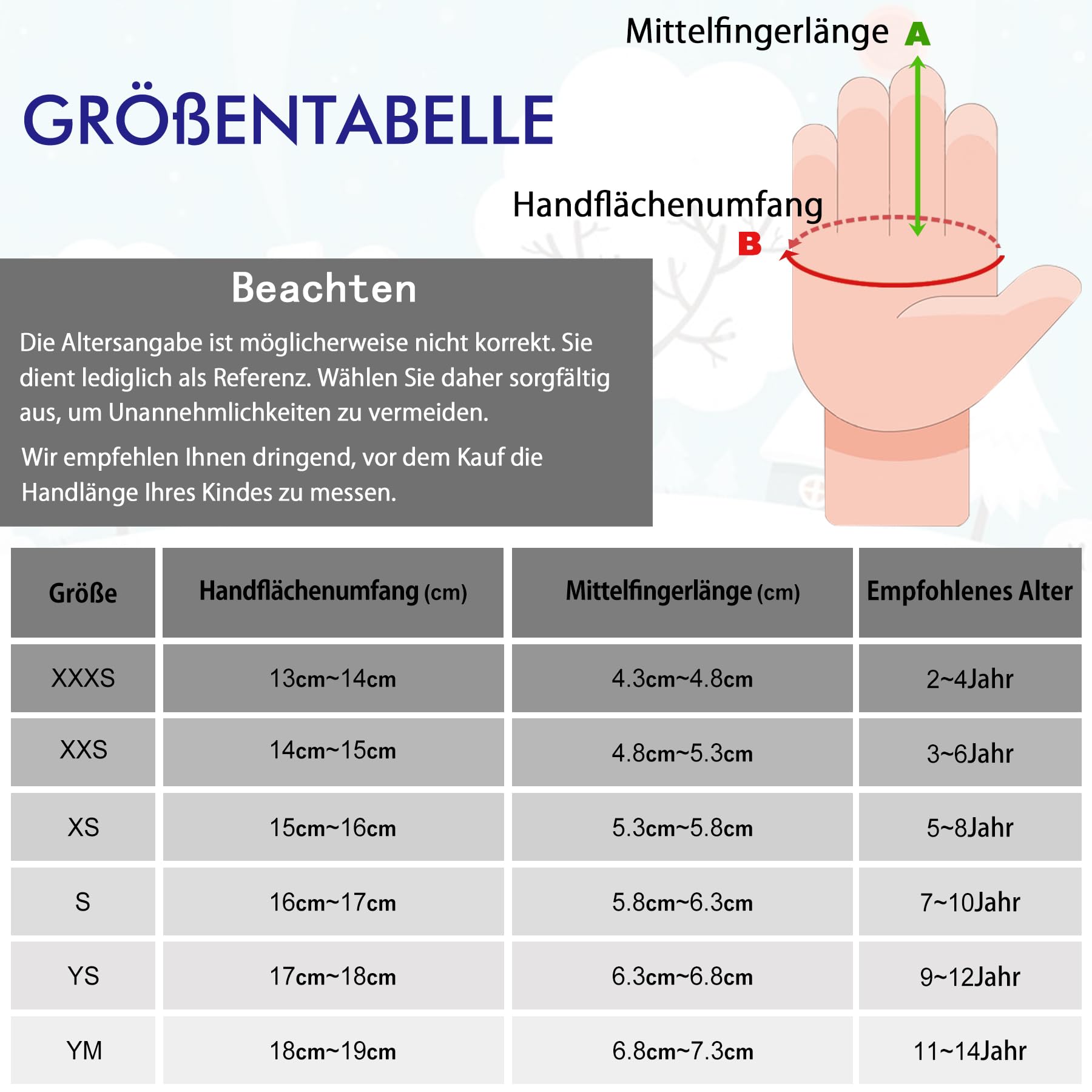 Size | XXXS (Bestimmung der Größe der Hand) |