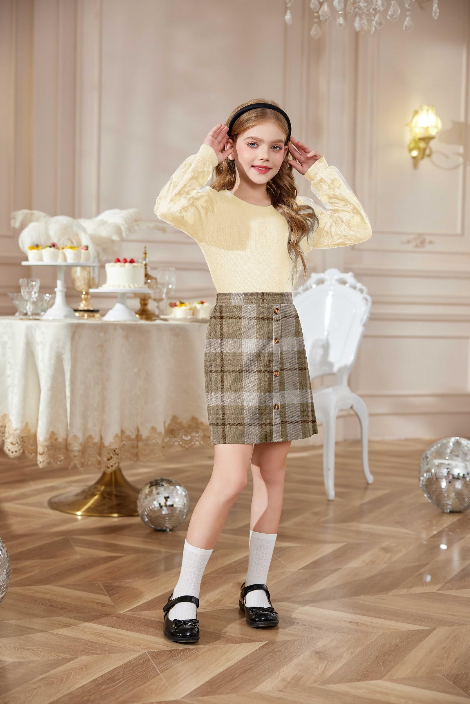 Arshiner Girls' Clothing Sets Elegant Long Sleeve Shirt with Skirt Set Children's Autumn Winter Outfit Checked Leisure Fashion Two Piece Clothing Sets for Girls 5-13 Years