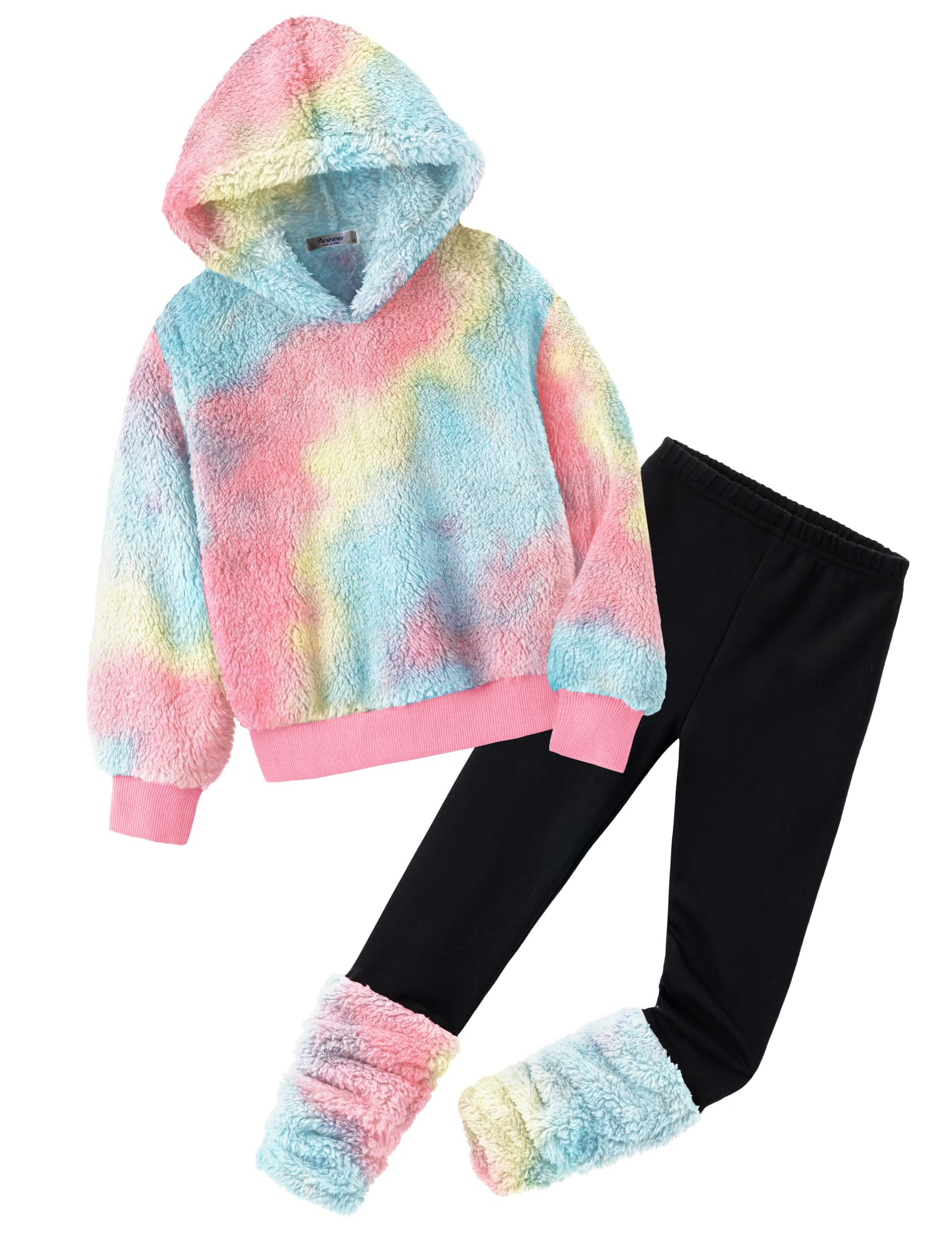 Arshiner Girls' Clothing Sets Winter Children's Hoodie with Leggings Set Warm Cuddly Padded Clothing Two Piece Outfits for Girls 5-14 Years