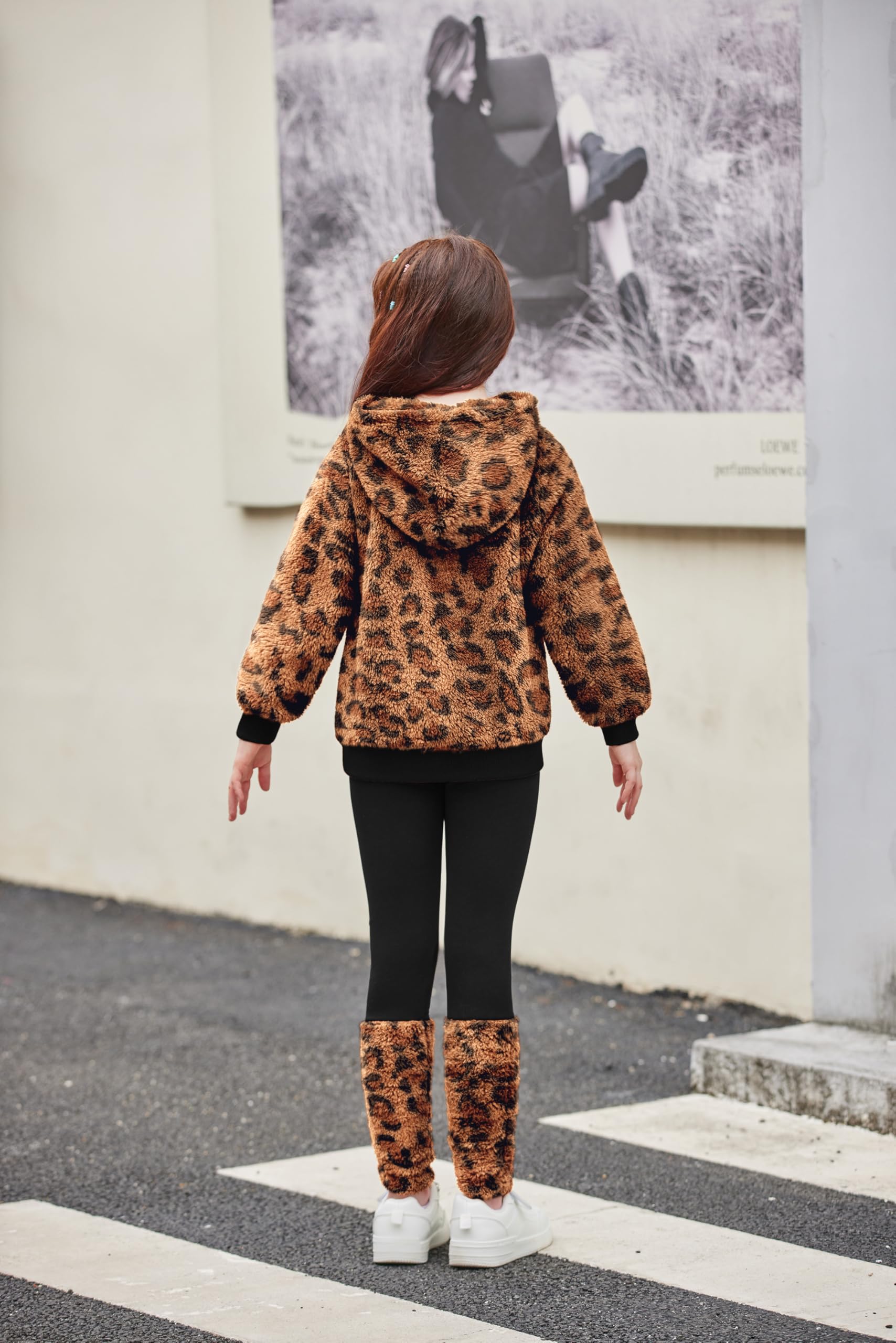 • Elegant set: This children's clothing for girls contains a plush hoodie and plush leggings. The overall style is warm and sweet. The hoodie is windproof and warm, and the leggings adapt to the body shape, which is casual and elegant.