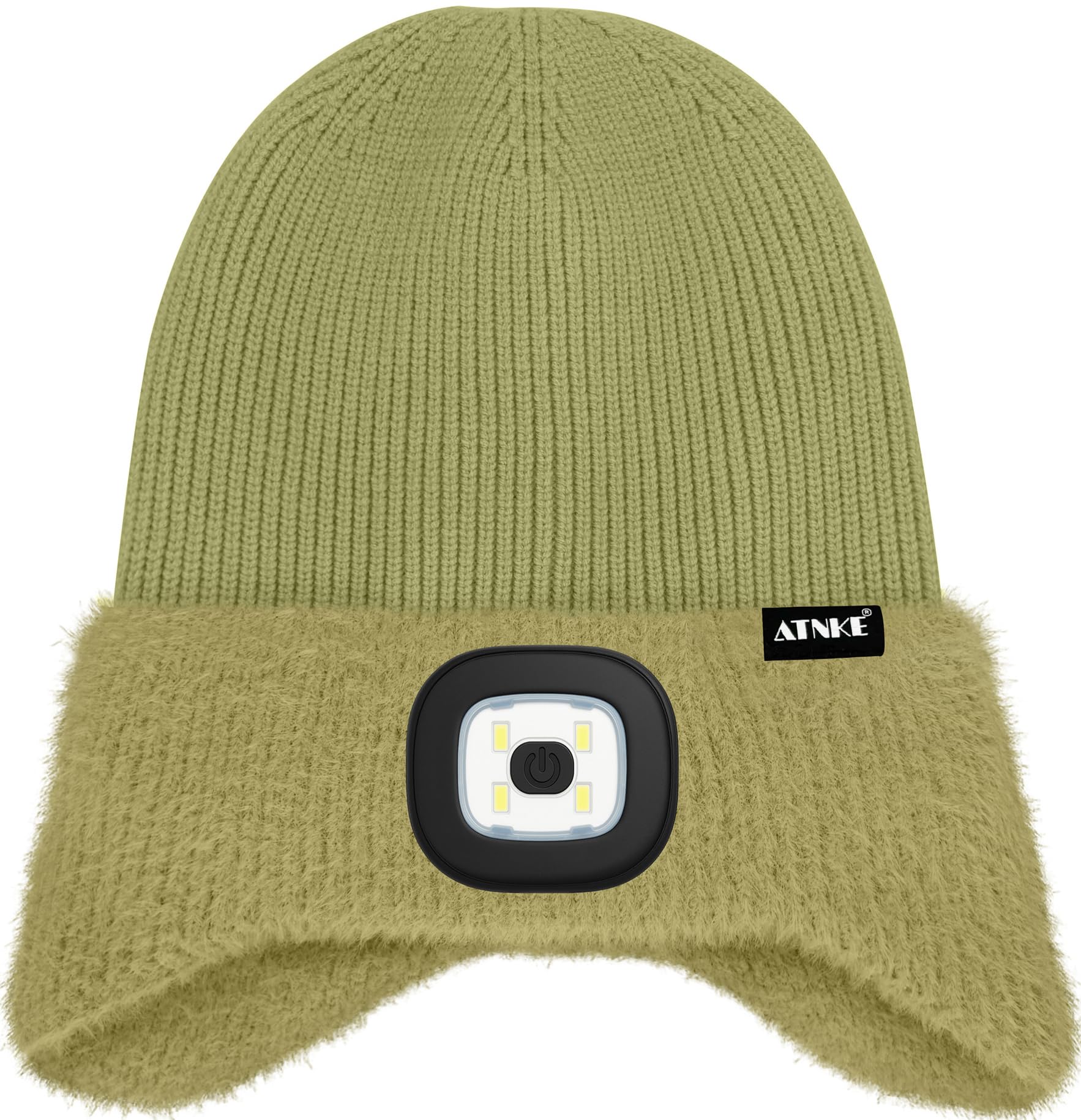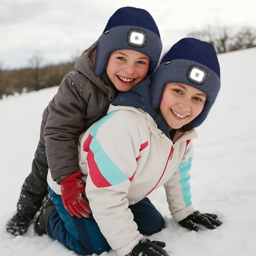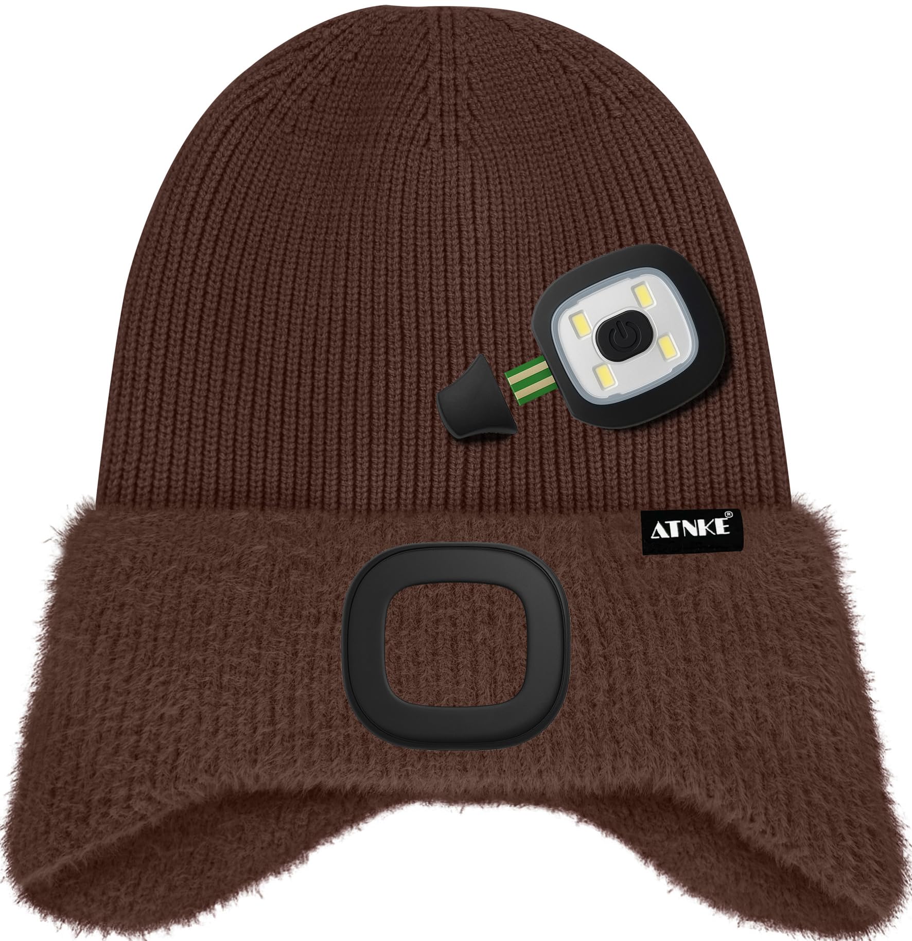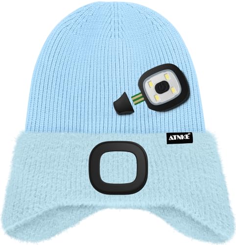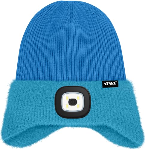 ATNKE Kinder LED Beleuchtete Ohrenklappen Mütze mit Licht,USB Wiederaufladbare 4 LED Laufmütze Stirnlampe Winter Warm Fleece Gefüttert Strick Mütze Geschenke für Jungen und Mädchen