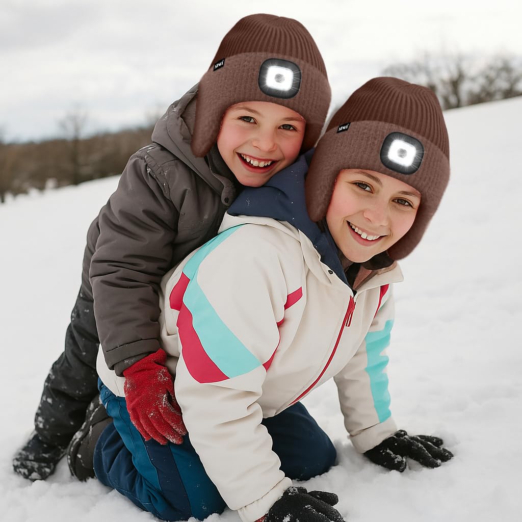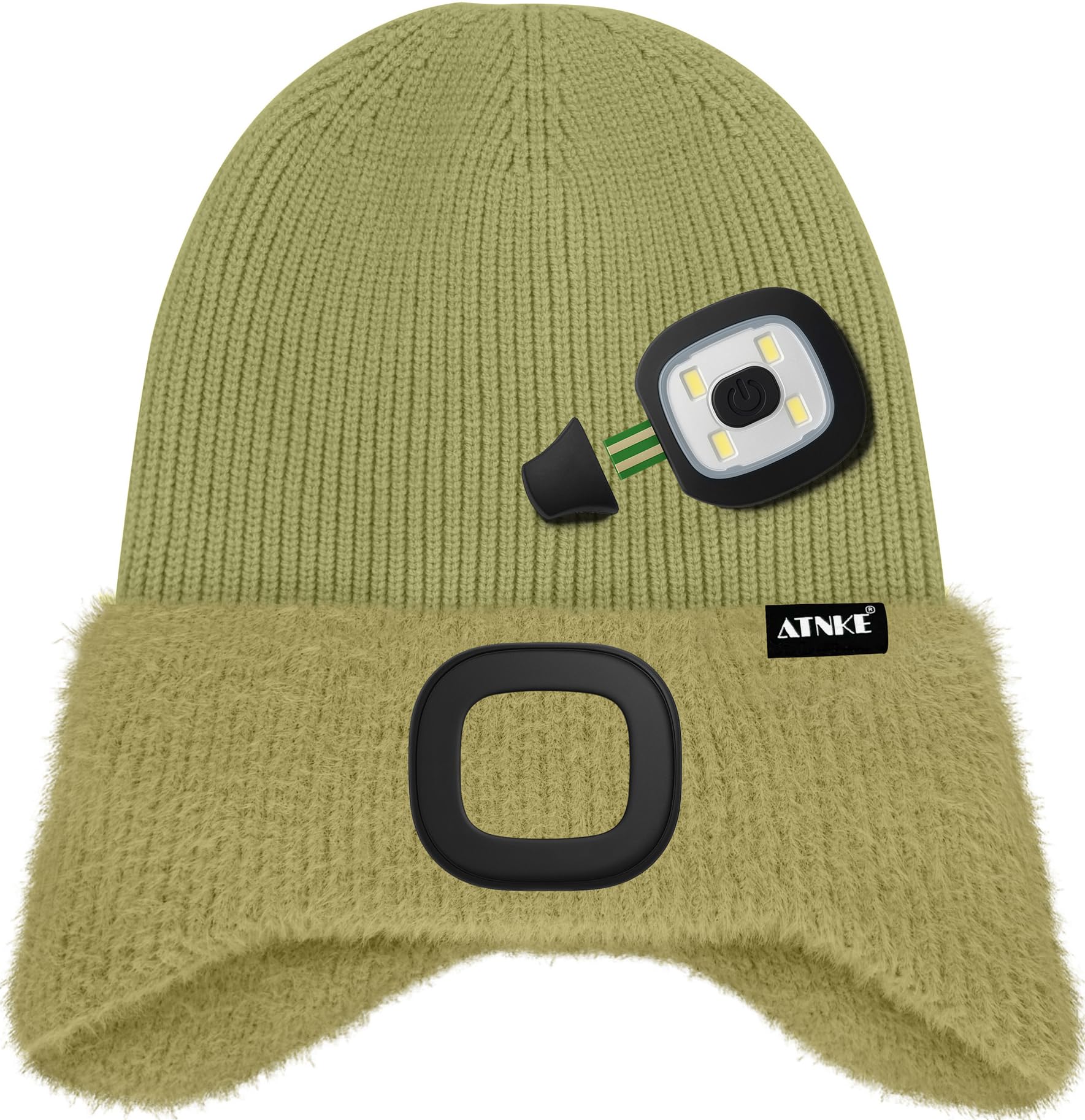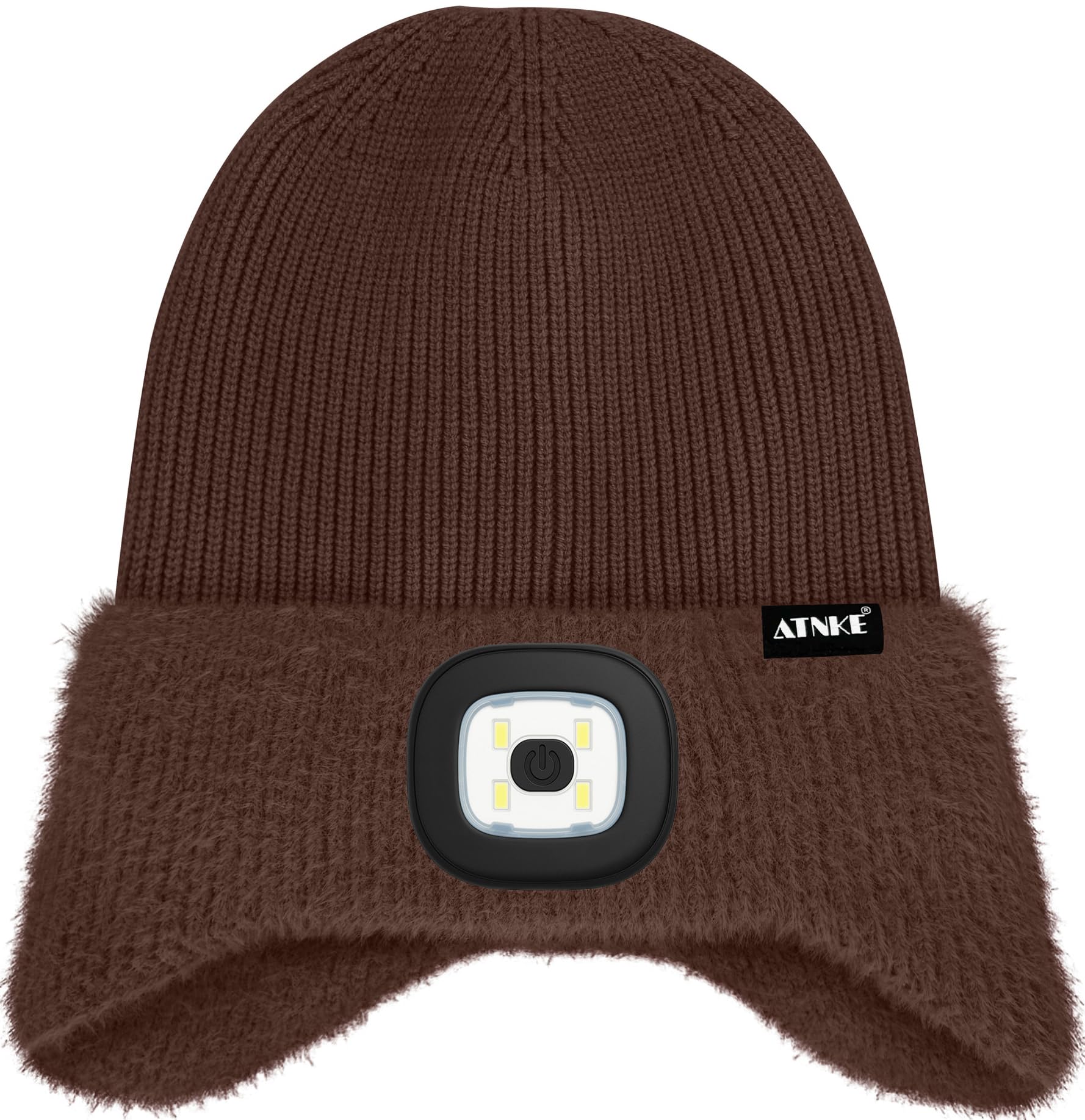 ATNKE Kinder LED Beleuchtete Ohrenklappen Mütze mit Licht,USB Wiederaufladbare 4 LED Laufmütze Stirnlampe Winter Warm Fleece Gefüttert Strick Mütze Geschenke für Jungen und Mädchen