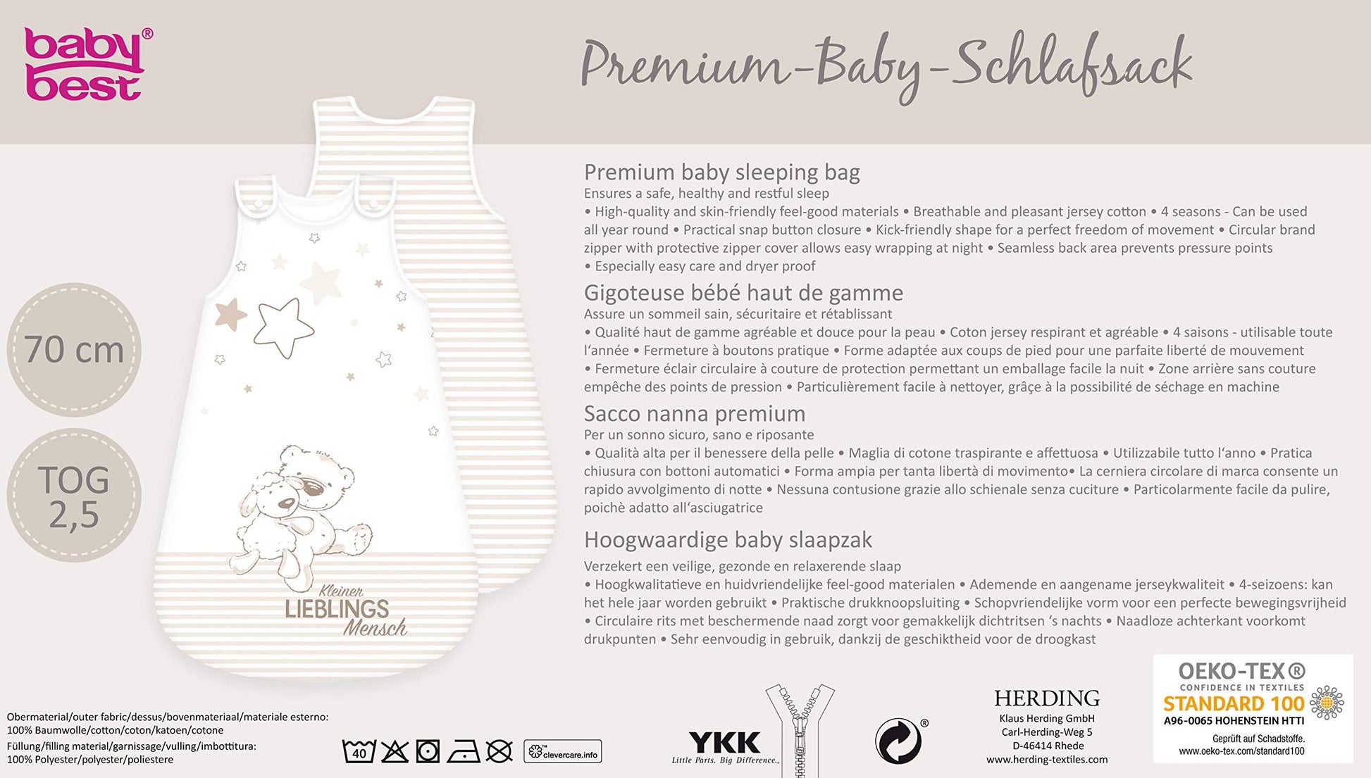 • Box contents: 1 x Herding baby sleeping bag, baby best, size: 70 x 45 cm, colour: white