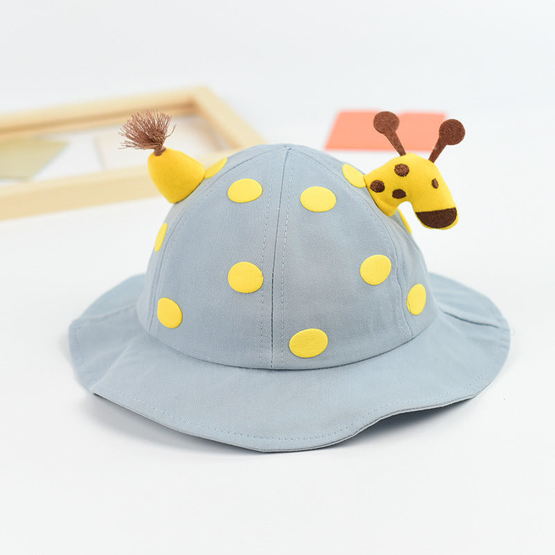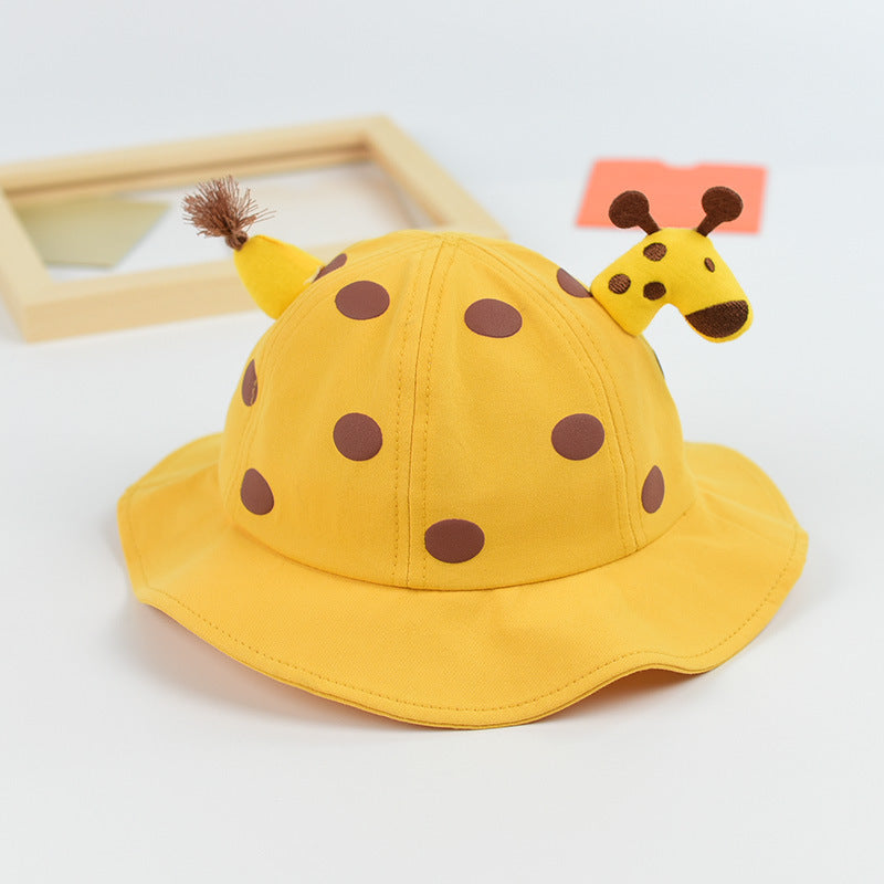 Baby Solid Color Animal Print Design Sunshade Bucket Hats