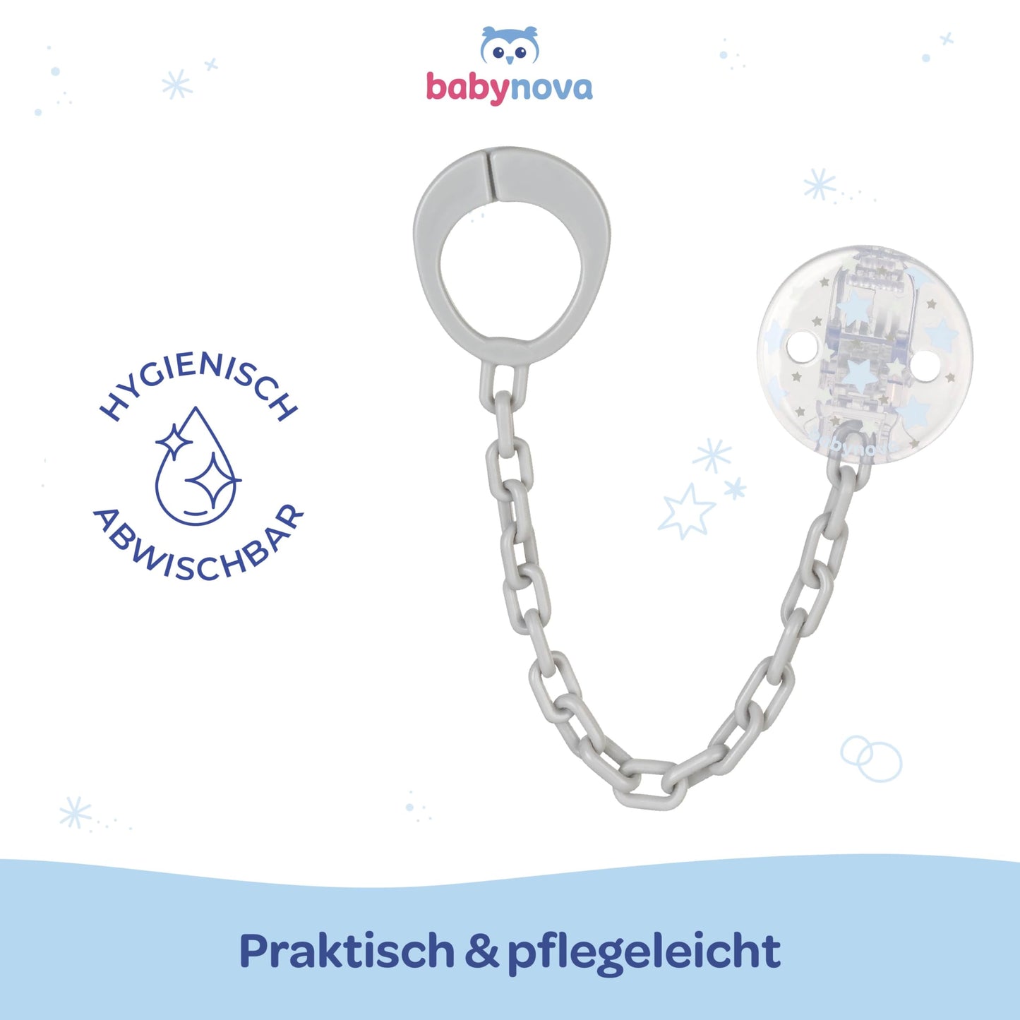 • Kompatibilität: Das Produkt ist mit allen babynova und dentistar Schnullern mit Ring kompatibel, sowie andere Marken.