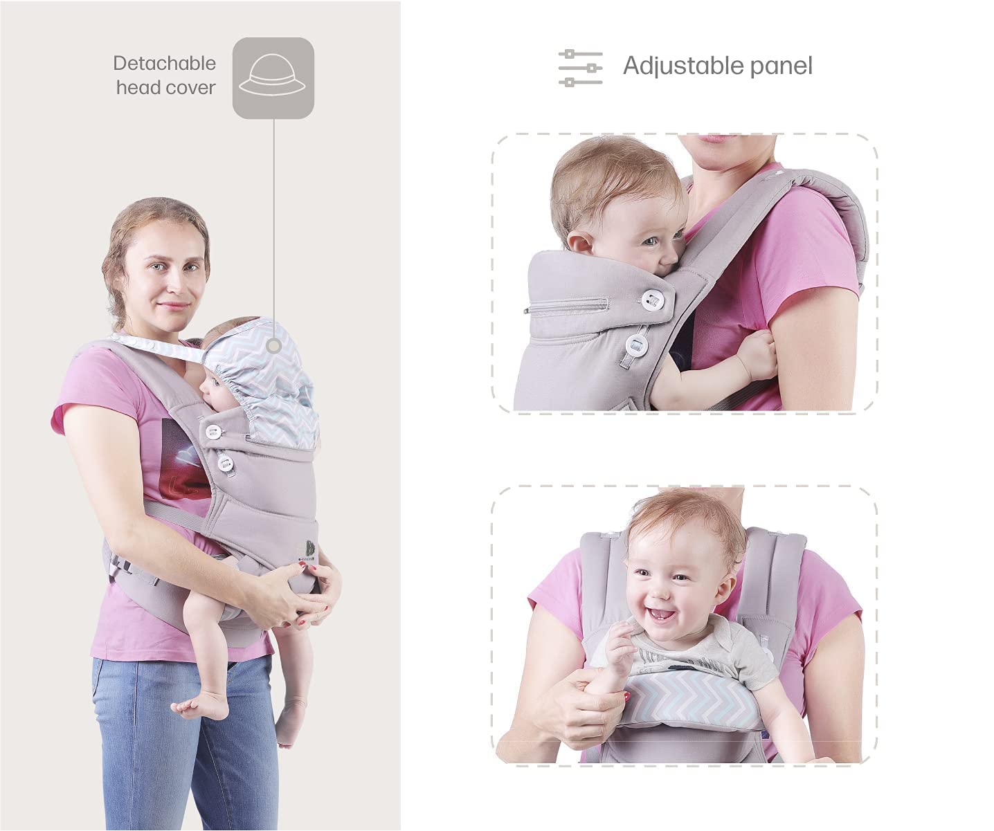 Babytrage Ergonomische Babytrage Neugeborene ab Geburt Neugeborenen-Trage 4 Positionen abnehmbarer/verstellbarer Kapuze trägt babys Beutel 100% Baumwolle