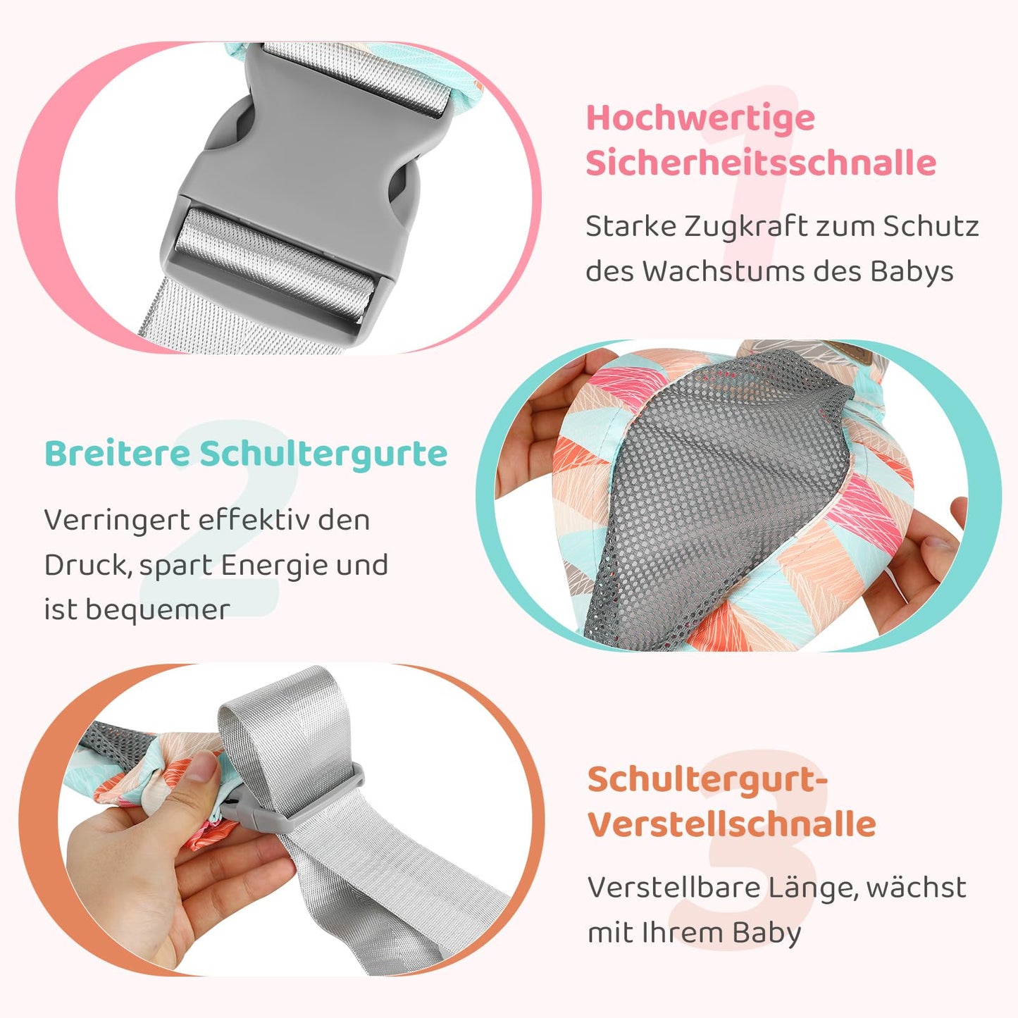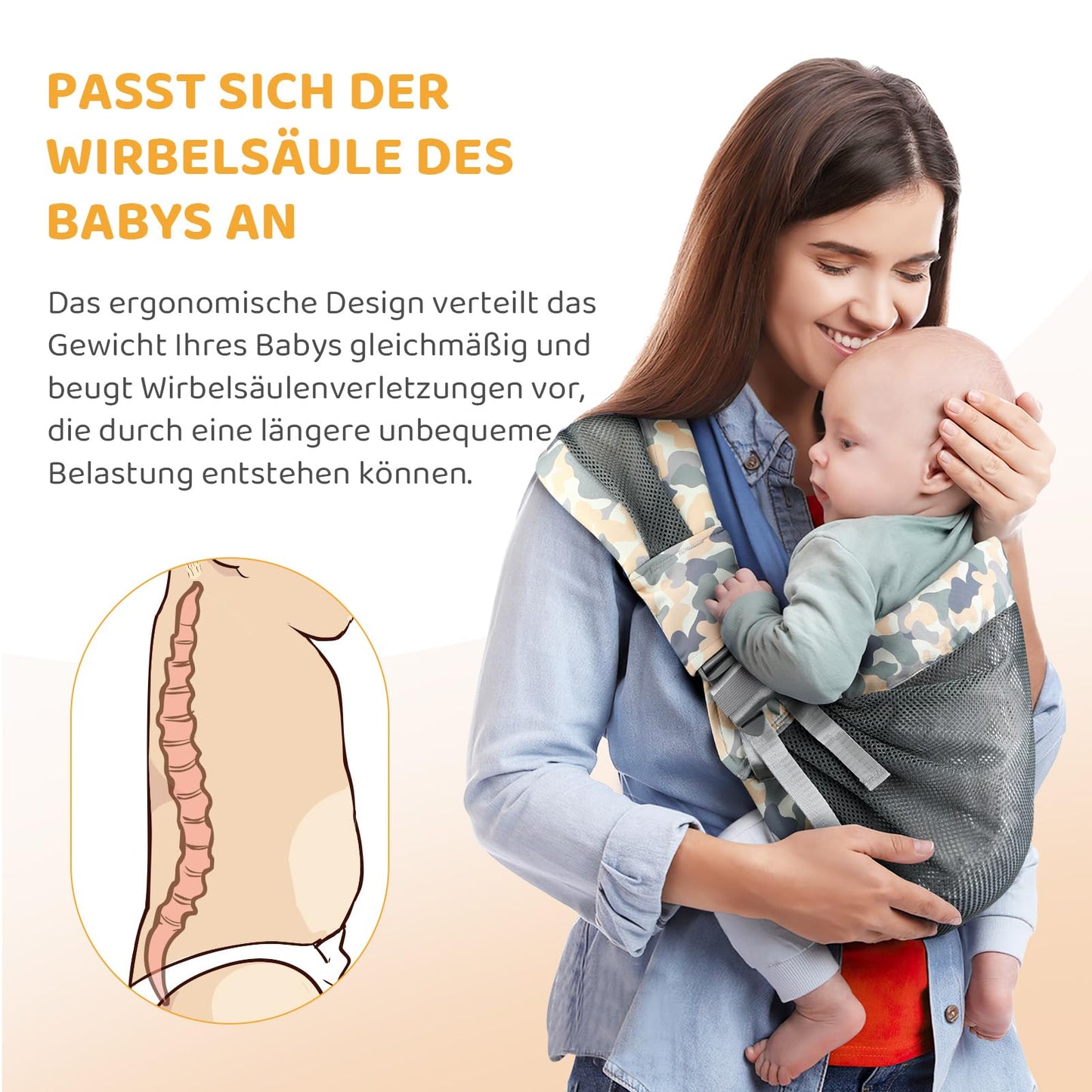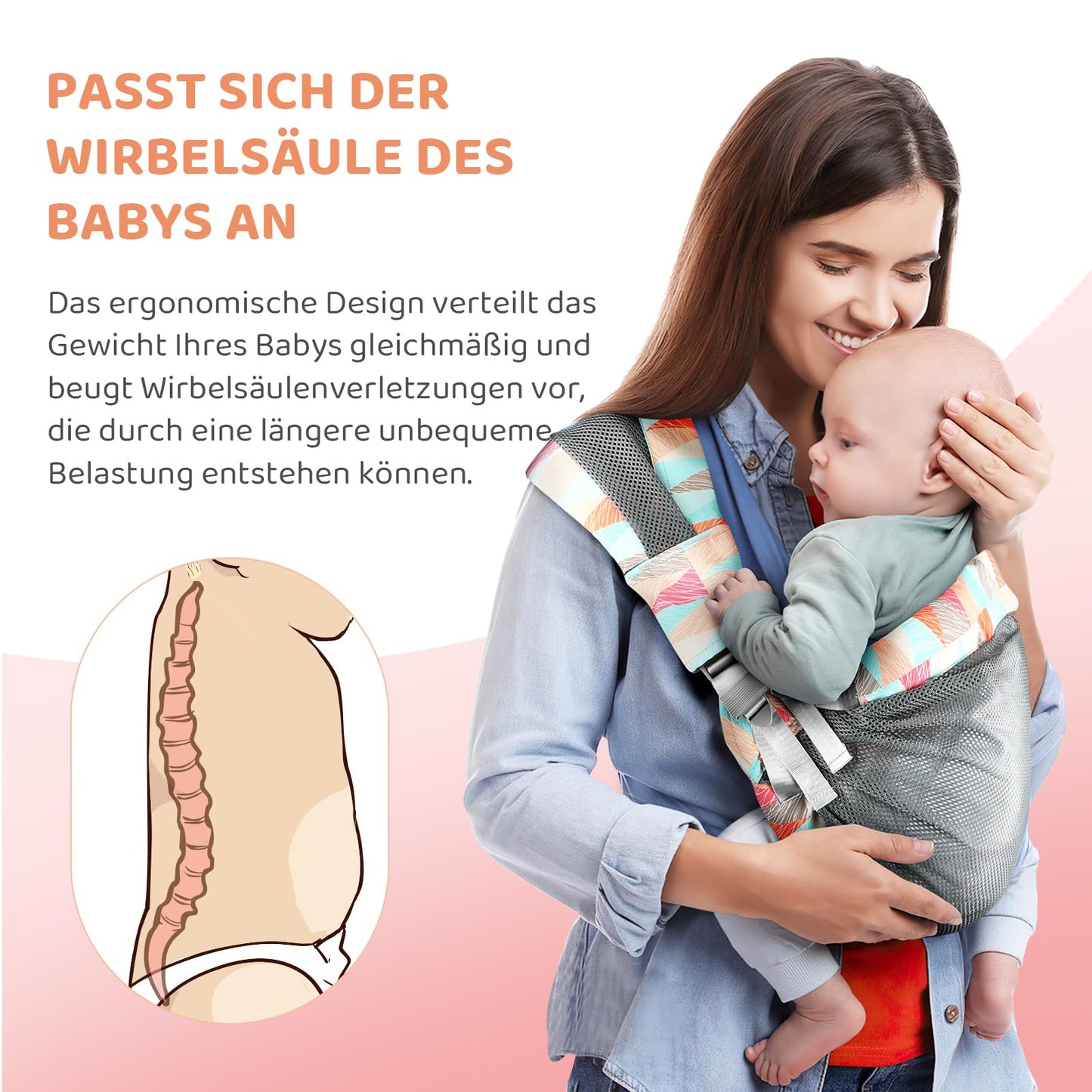 • Verstellbare Träger sorgen für individuellen Komfort für Eltern und Baby.