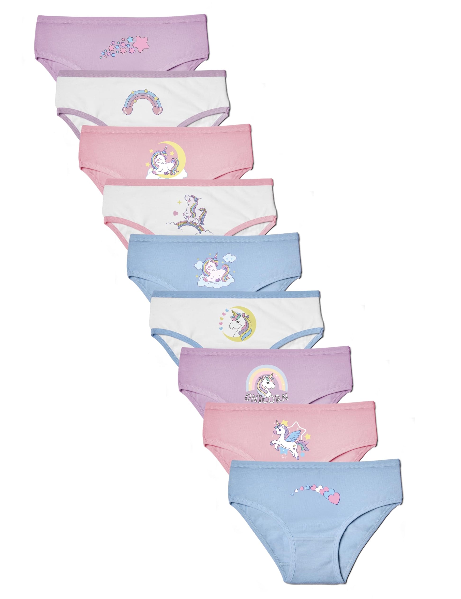 • ✅ SCHÖNE MOTIVE: Mit den vielseitigen Einhorn-, Stern-, Herz- und Regenbogen-Motiven bringen diese Unterhosen für Mädchen Farbe und Spaß in die Unterwäscheschublade.
