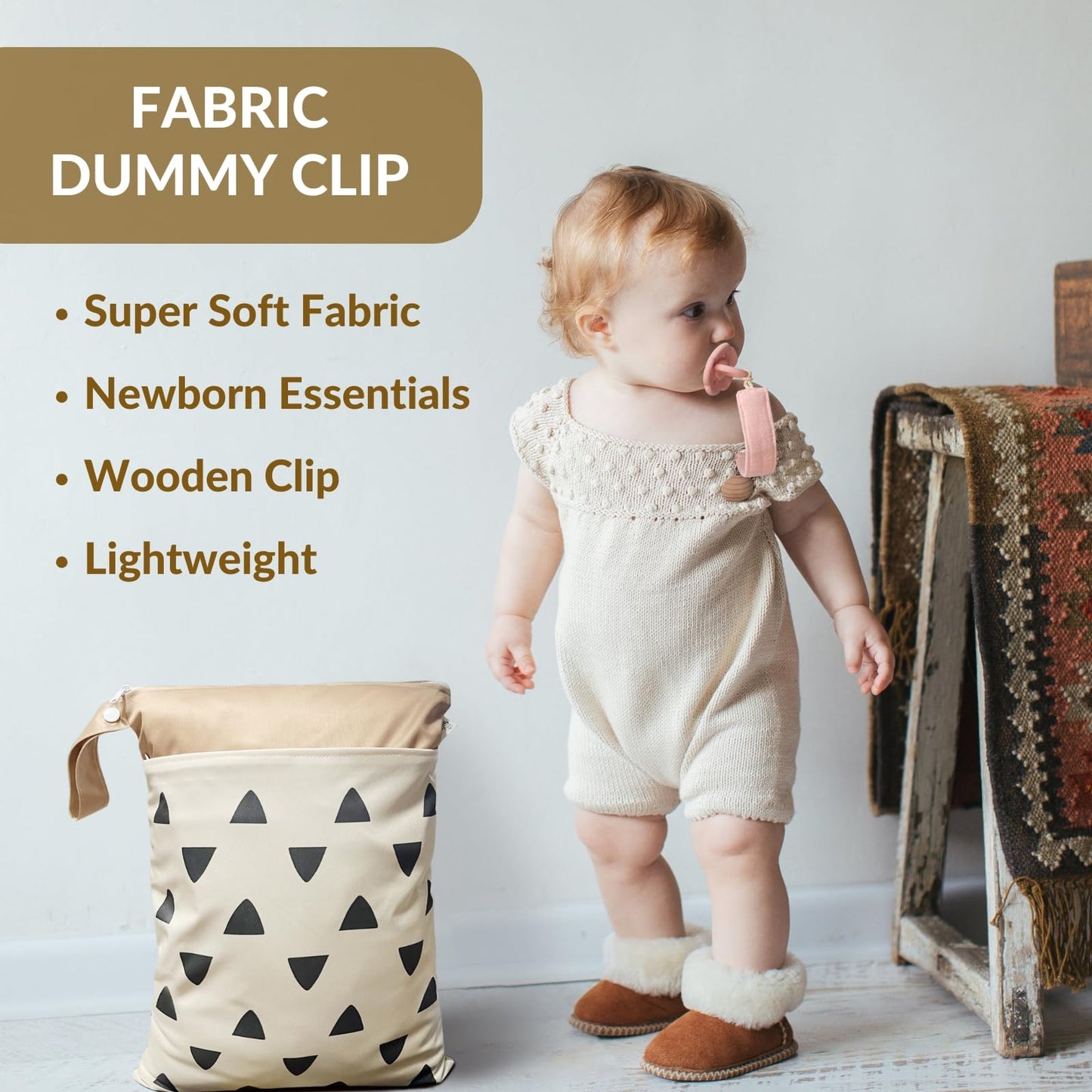 BebeBiu Schnullerkette, 2er-Pack Schnullerband aus Stoff, Extra Weich Stoffband mit Holzclip, Schnullerkette Junge, Schnullerkette Mädchen, Schnullerclip für Neugeborene (Cream/Blush)