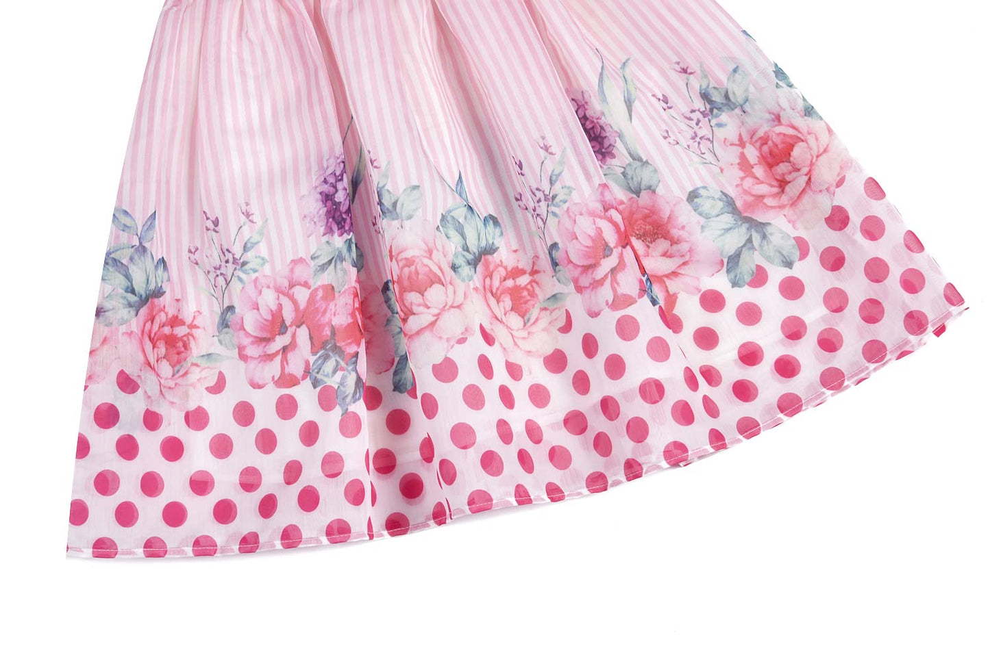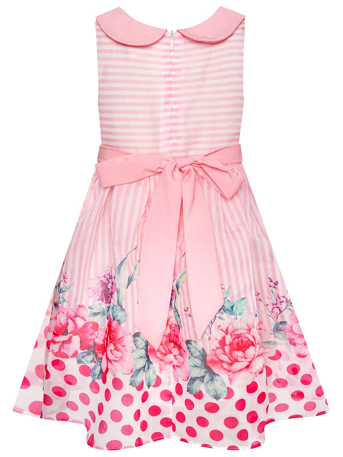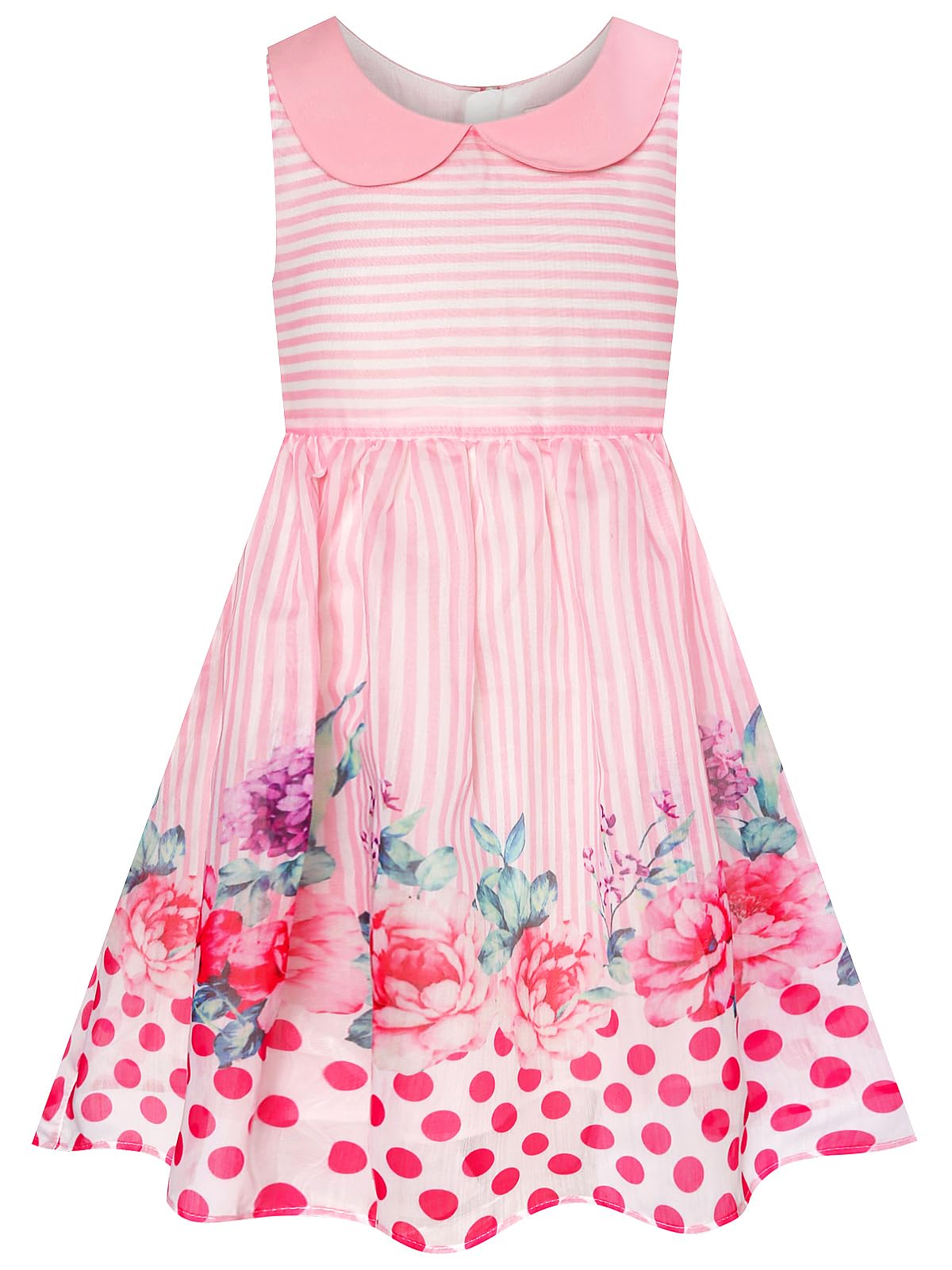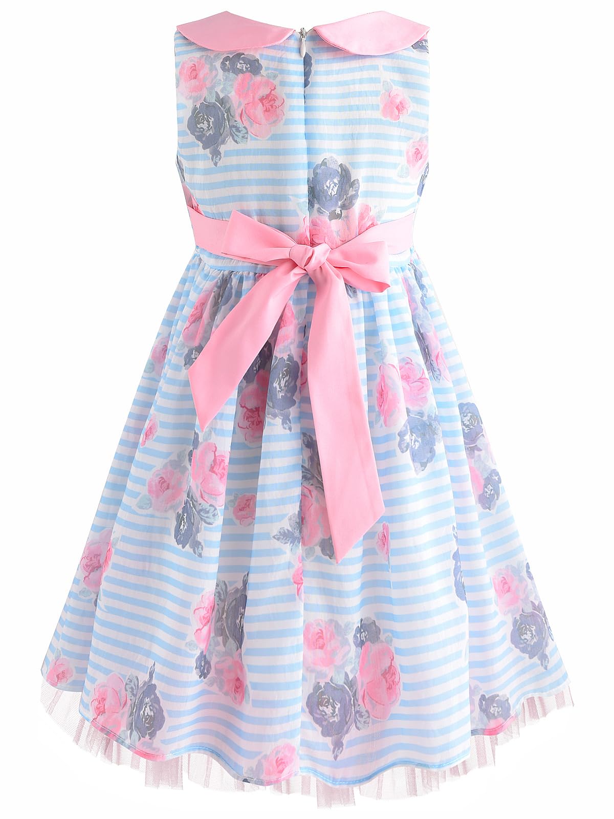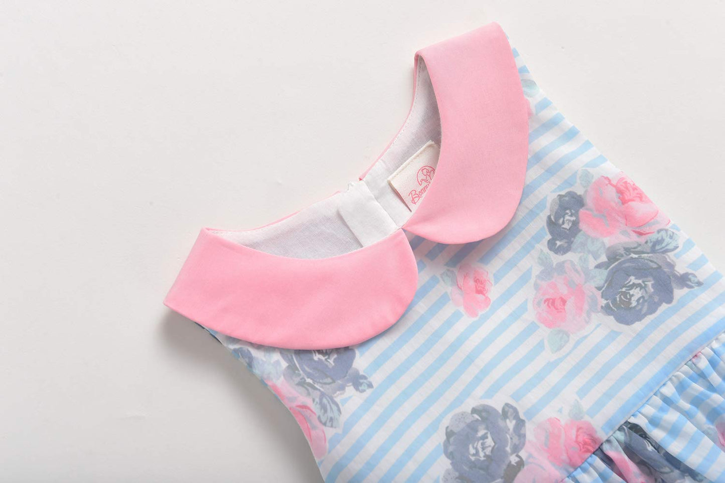 BONNY BILLY Mädchen Kleider Ärmellos Sommer Freizeit Gestreift Blumen A-Linie Kinder Kleid mit Kragen
