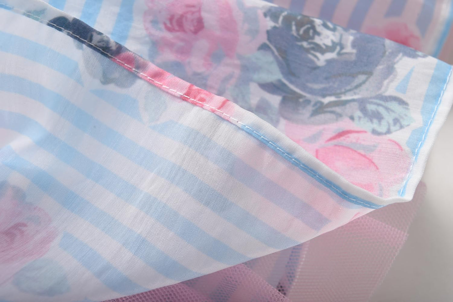 • Freizeitkleid mit Peter Pan Kragen, Streifen- und Blumenmuster, taillierte Passform, verdeckter Reißverschluss auf der Rückseite.