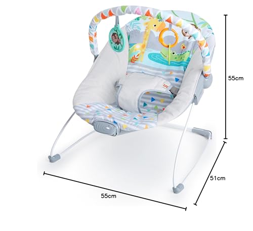 Bright Starts, Babywippe Babyschaukel Safari Fun mit Beruhigenden Vibrationen, Spielbogen mit 2 Spielzeugen, 3-Punkte-Gurt Sitz, Maschinenwaschbares Sitzpolster, ab der Geburt bis 9kg