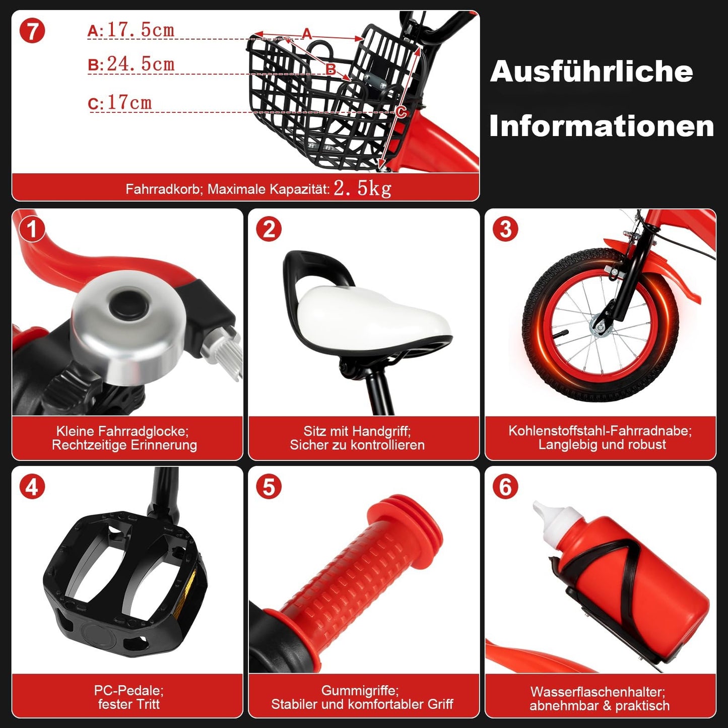 Dieses Kinderfahrrad zeichnet sich durch die folgenden Funktionen aus:
