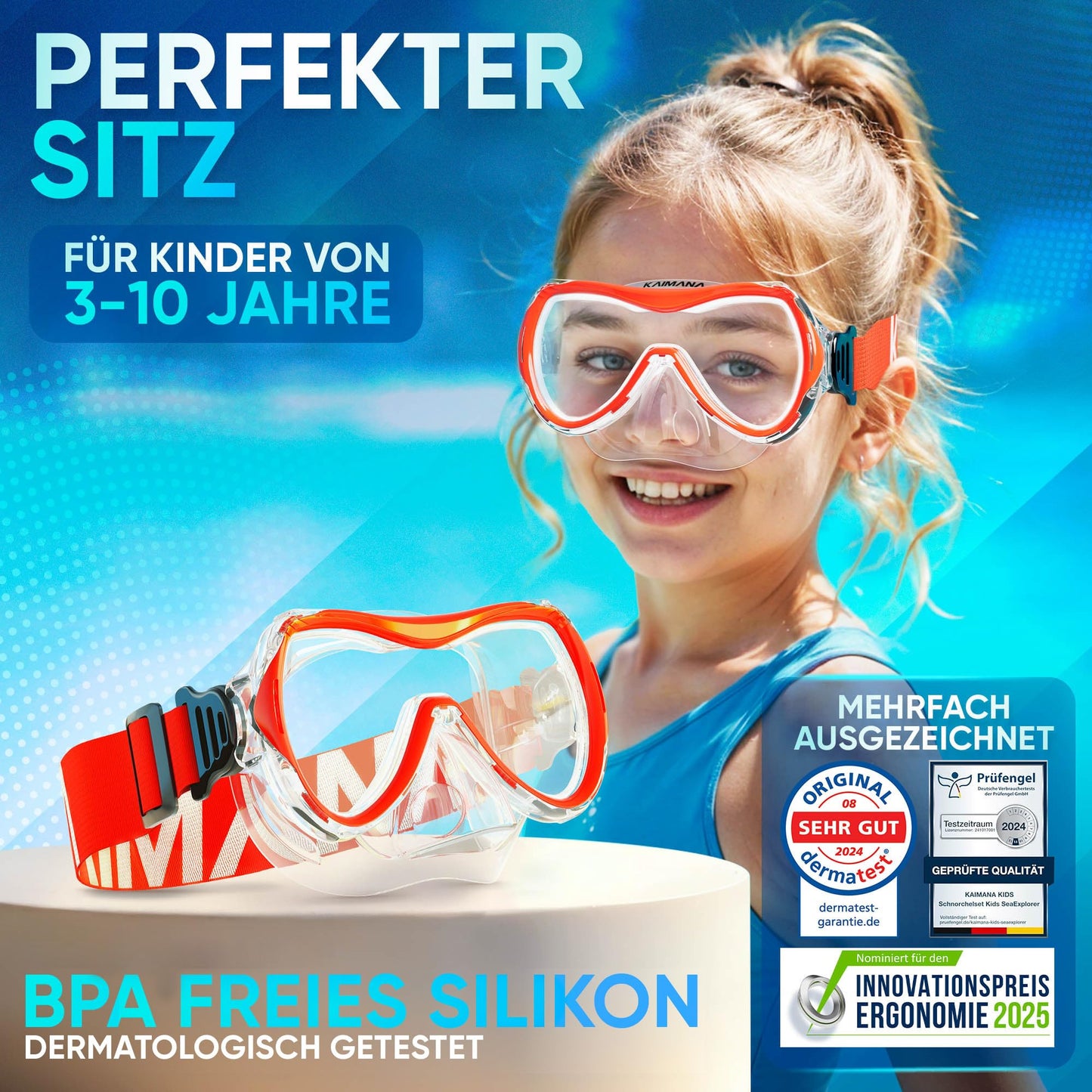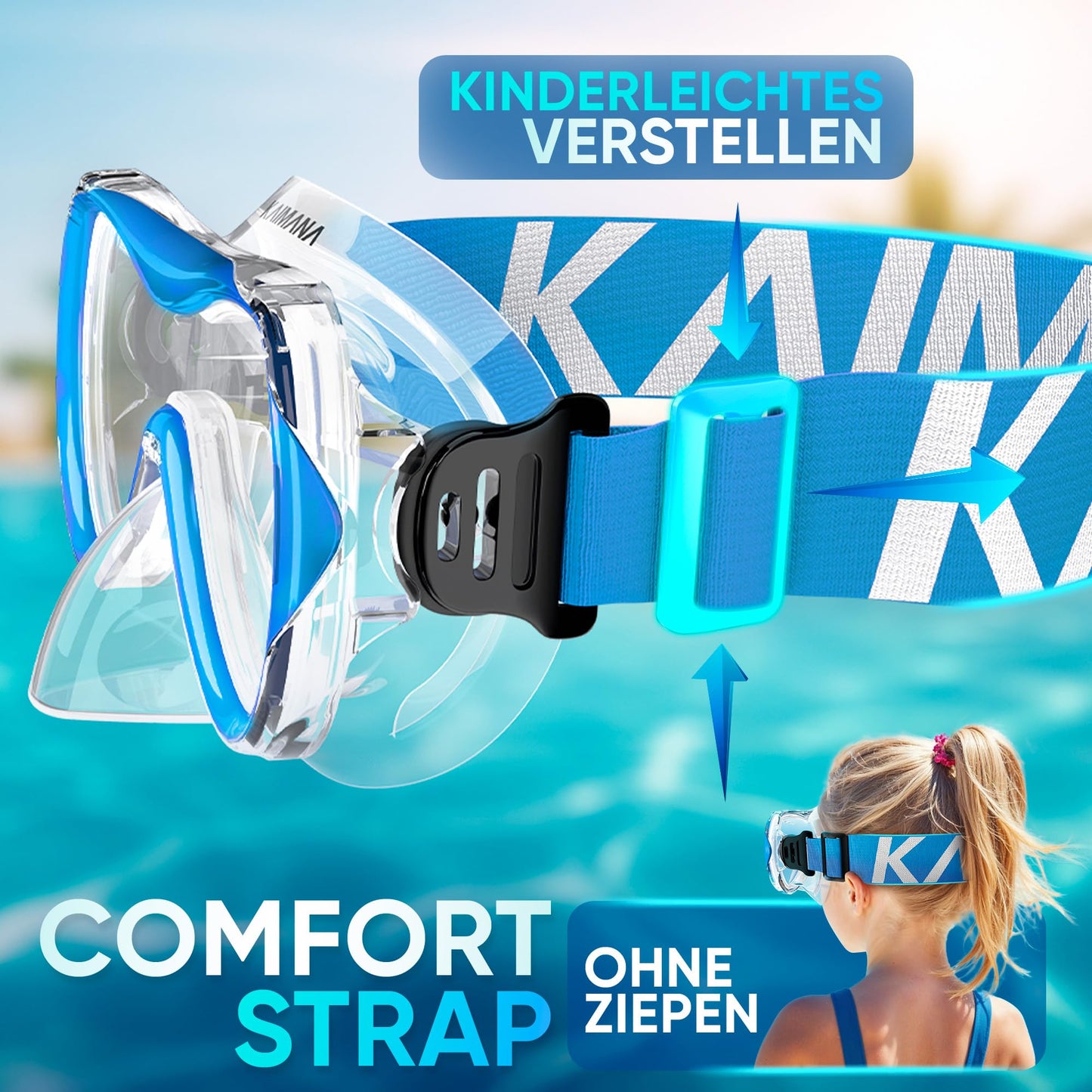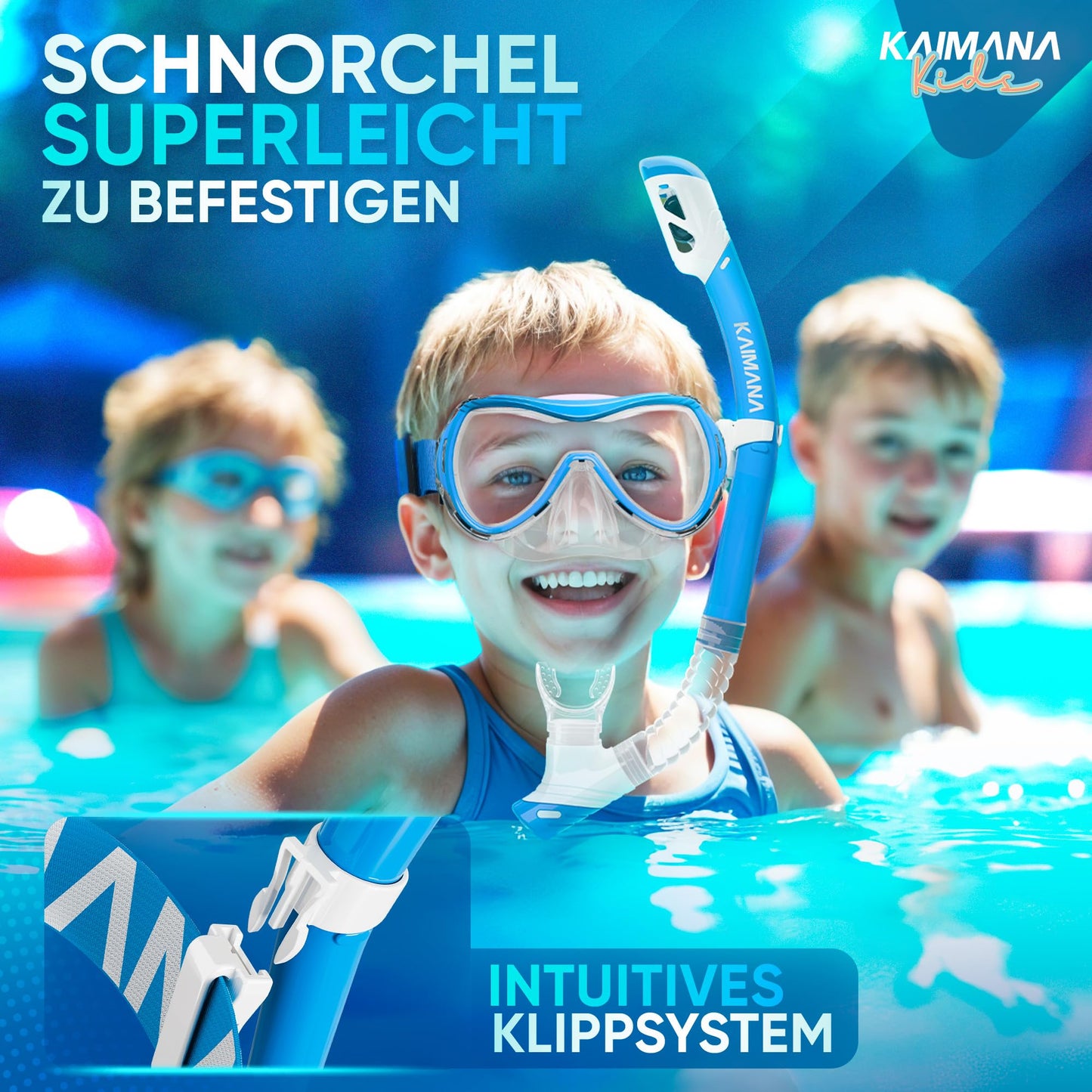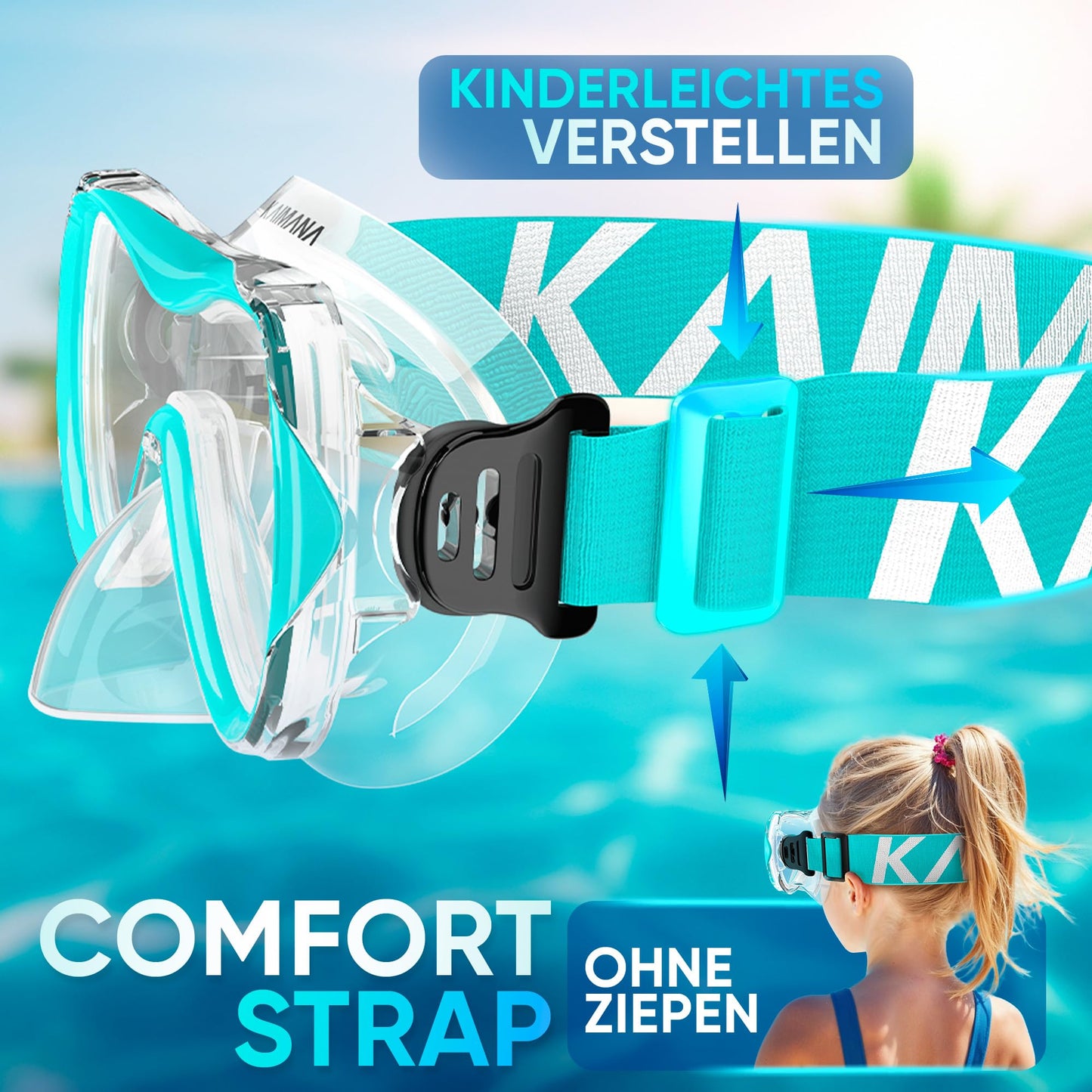 Die Taucherbrille ist ein unverzichtbares Accessoire für kleine Entdecker, die die Unterwasserwelt erkunden möchten. Mit dem neuen KAIMANA® SeaExplorer Schnorchelset für Kinder sorgen wir dafür, dass das Schnorcheln für Ihre Kleinen zu einem unvergesslichen Erlebnis wird. Das Schnorchelset überzeugt durch seine hohe Qualität und Benutzerfreundlichkeit, perfekt für Kinder jeden Alters.