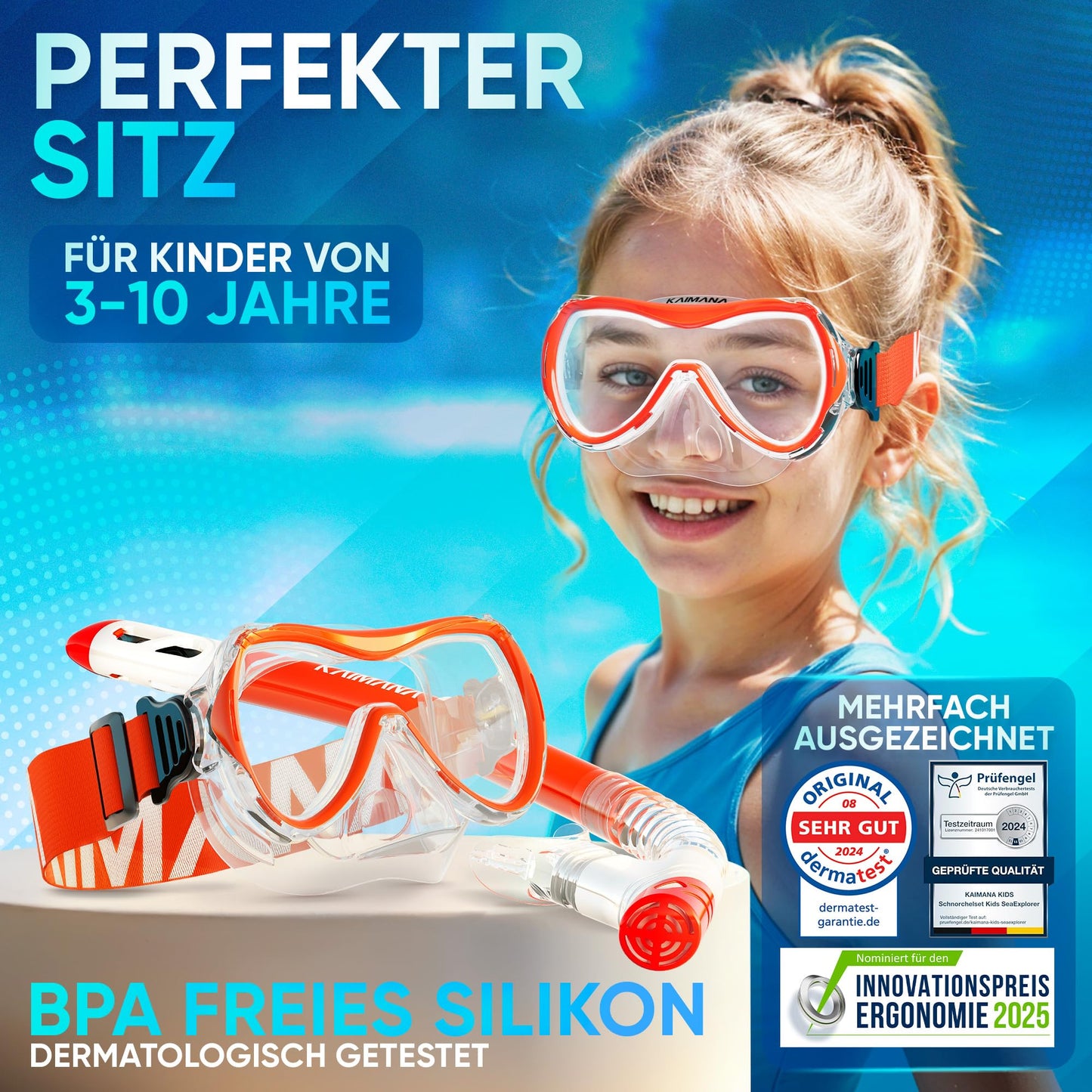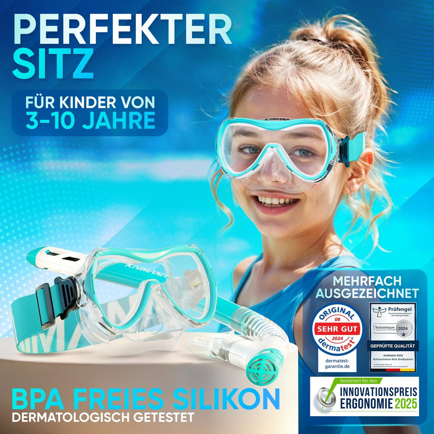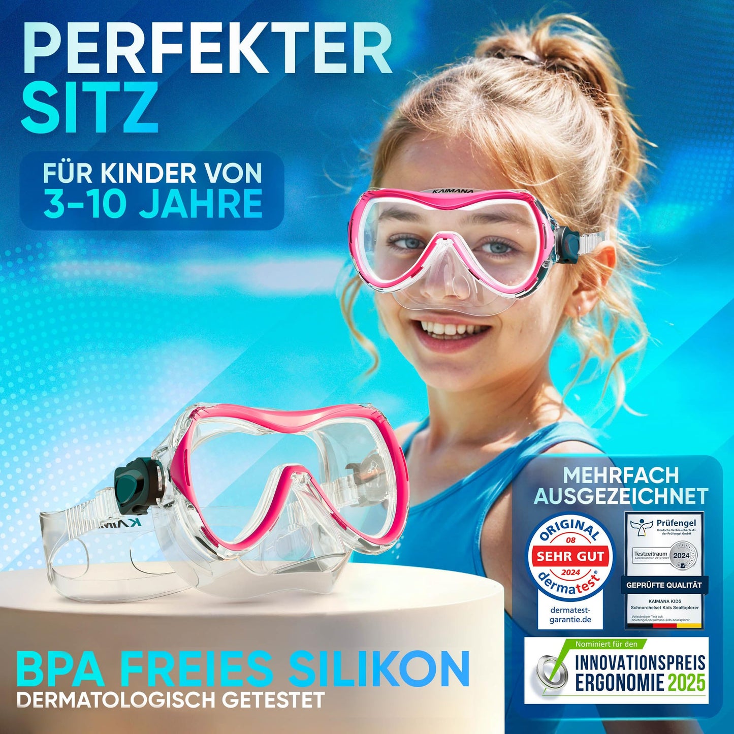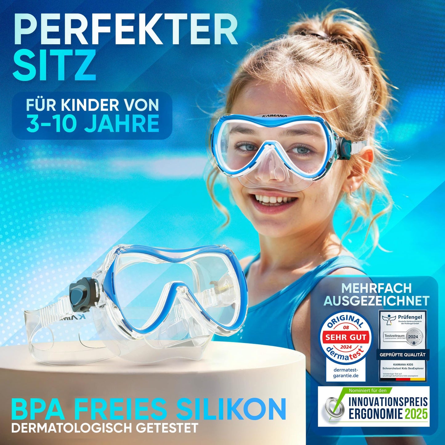 Die Taucherbrille ist ein unverzichtbares Accessoire für kleine Entdecker, die die Unterwasserwelt erkunden möchten. Mit dem neuen KAIMANA® SeaExplorer Schnorchelset für Kinder sorgen wir dafür, dass das Schnorcheln für Ihre Kleinen zu einem unvergesslichen Erlebnis wird. Das Schnorchelset überzeugt durch seine hohe Qualität und Benutzerfreundlichkeit, perfekt für Kinder jeden Alters.