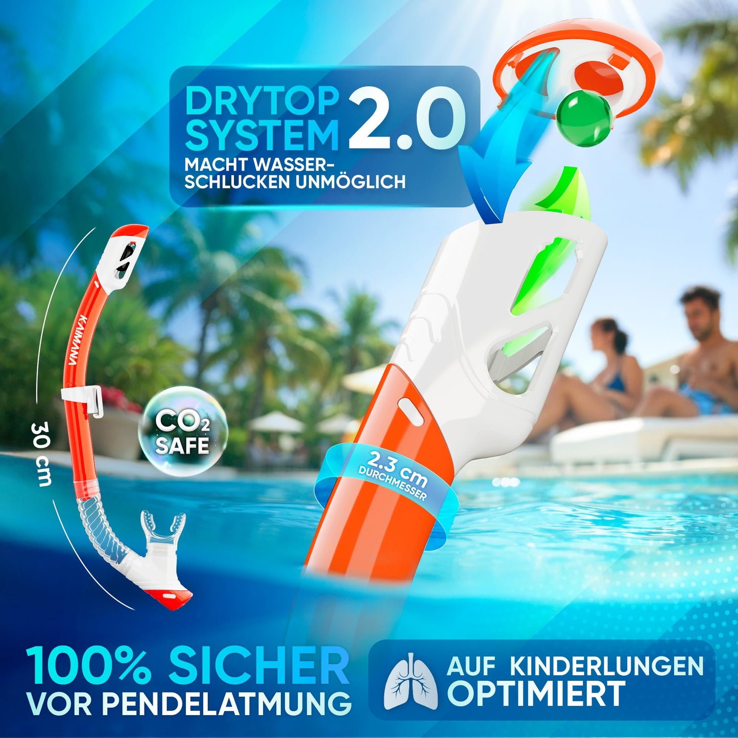 Das Neue KAIMANA® SeaExplorer Schnorchelset Kinder + Tragetasche, Taucherbrille mit Schnorchel, Taucherbrille Kinder, Alternative zur Schnorchelmaske Kinder, Taucherbrille mit Stoffband/Silikonband