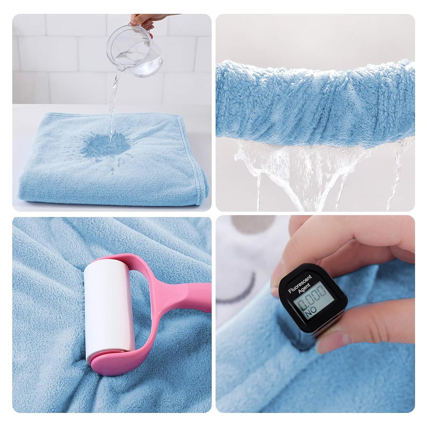 decalsweet Badetücher Badehandtuch Kinder, Groß Geschmeidigkeit Besonders Saugfähig Kapuzen-Babybadetuch, Korallfleece-Kinderhandtuch für Bademantel Jungen Mädchen, 70 x 140 cm (Blau Elefant)
