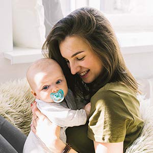 • Sicheres Material – Bestehend aus BPA-freiem Material** und weichem, transparentem 100% Silikon ist der Beruhigungssauger für Babys und Kleinkinder unbedenklich.