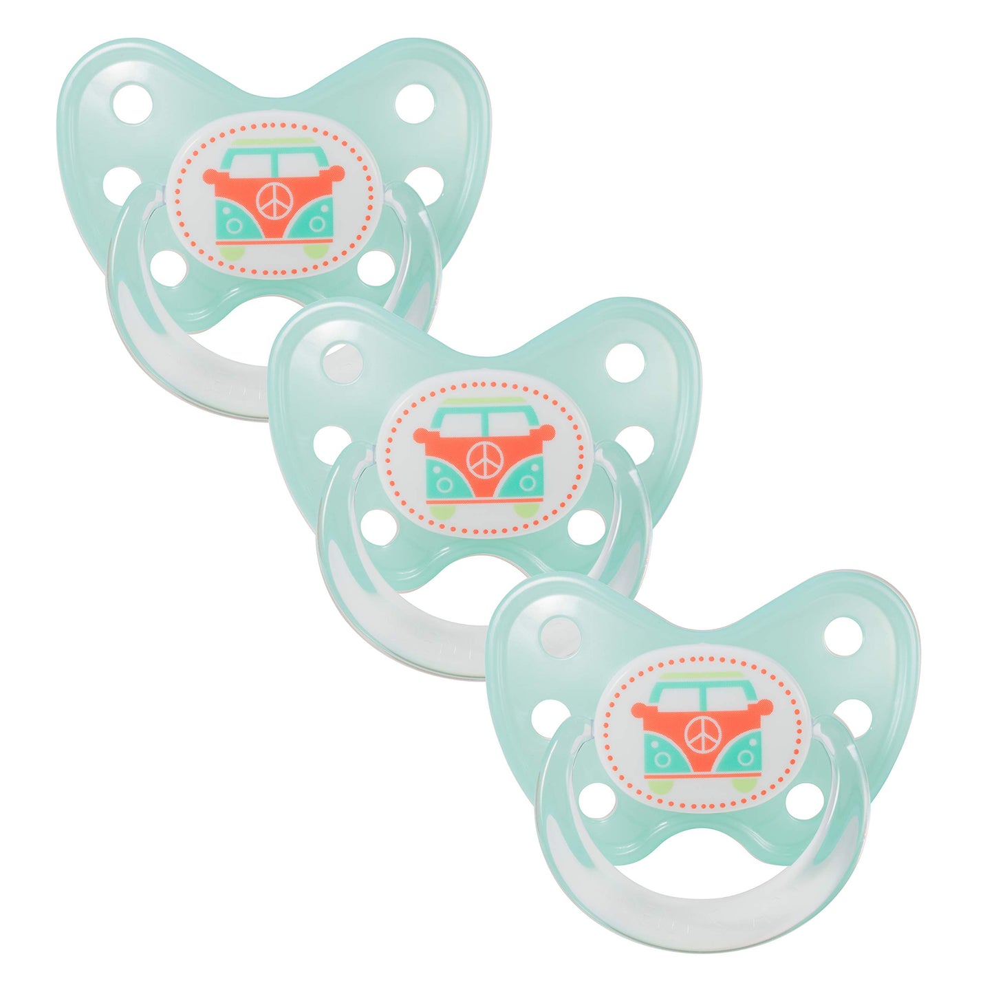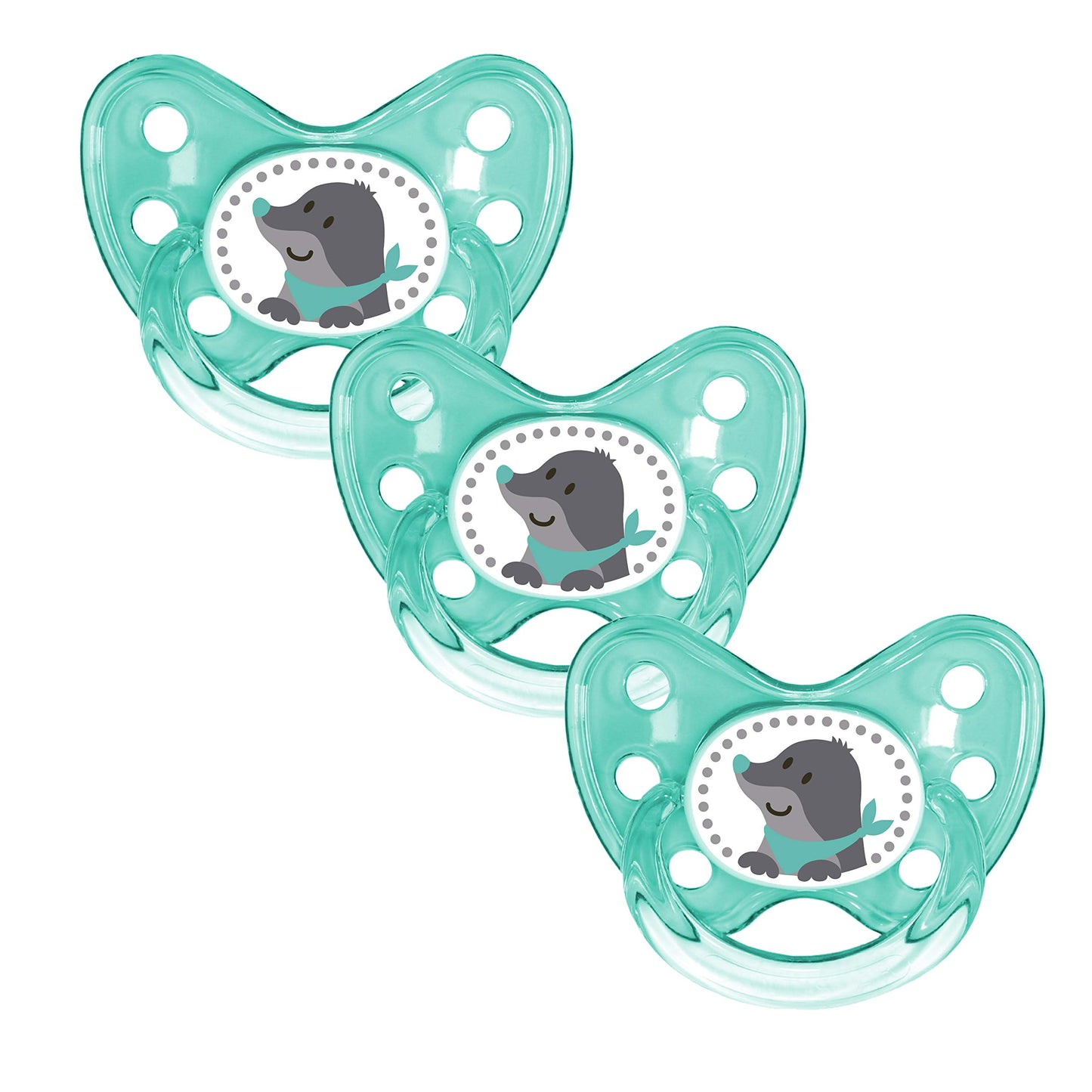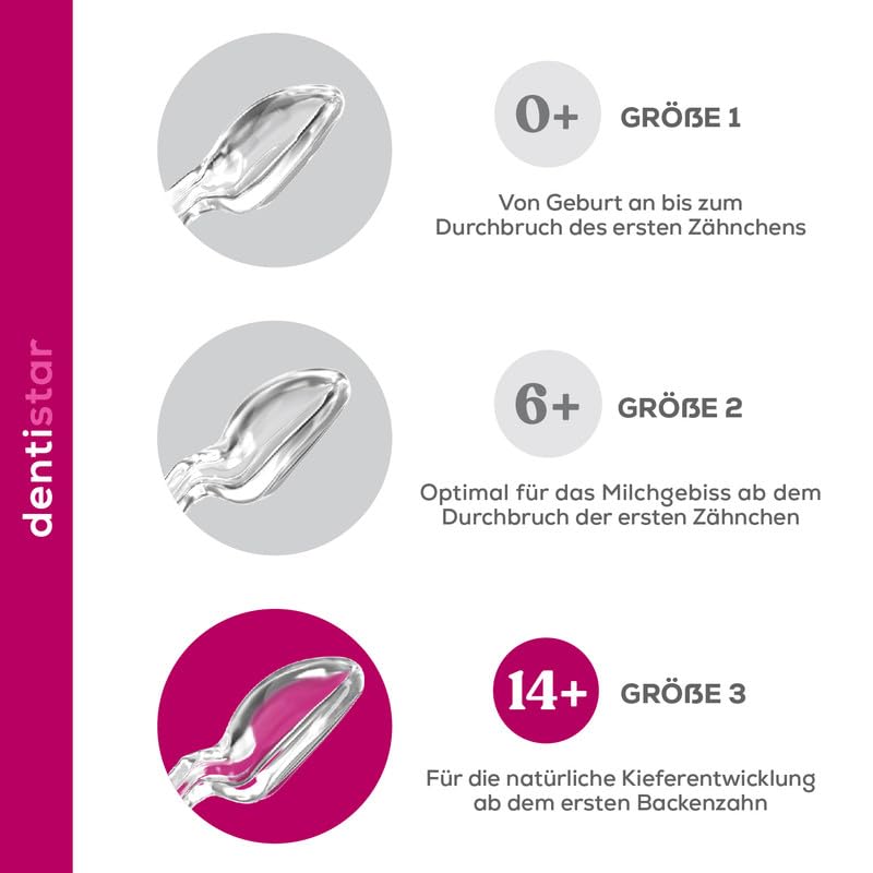 • Silikon Schnuller – Der kieferfreundliche dentistar Silikon Schnuller ist in 3 verschiedenen Größen erhältlich und bietet eine große Farb- und Motivauswahl für Jungen und Mädchen.