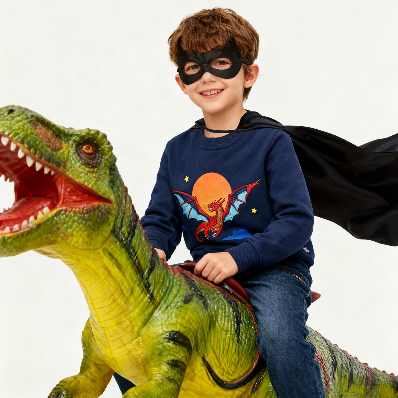 Dinopjs Boys' Jumper, Boys' Warm Sweatshirts, Classic Cartoon Animals, Tractor, Dino, Flying Dragon Knight, Rainbow, Polar Bear Christmas Tree, Cotton Sports Shirts for Children 2-9 Years