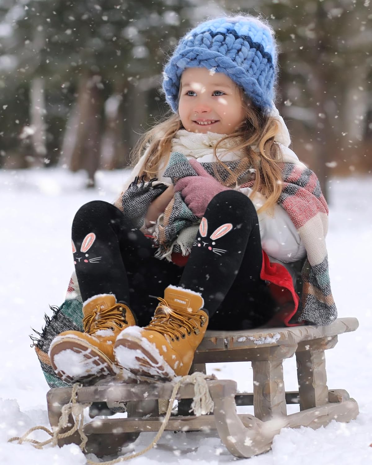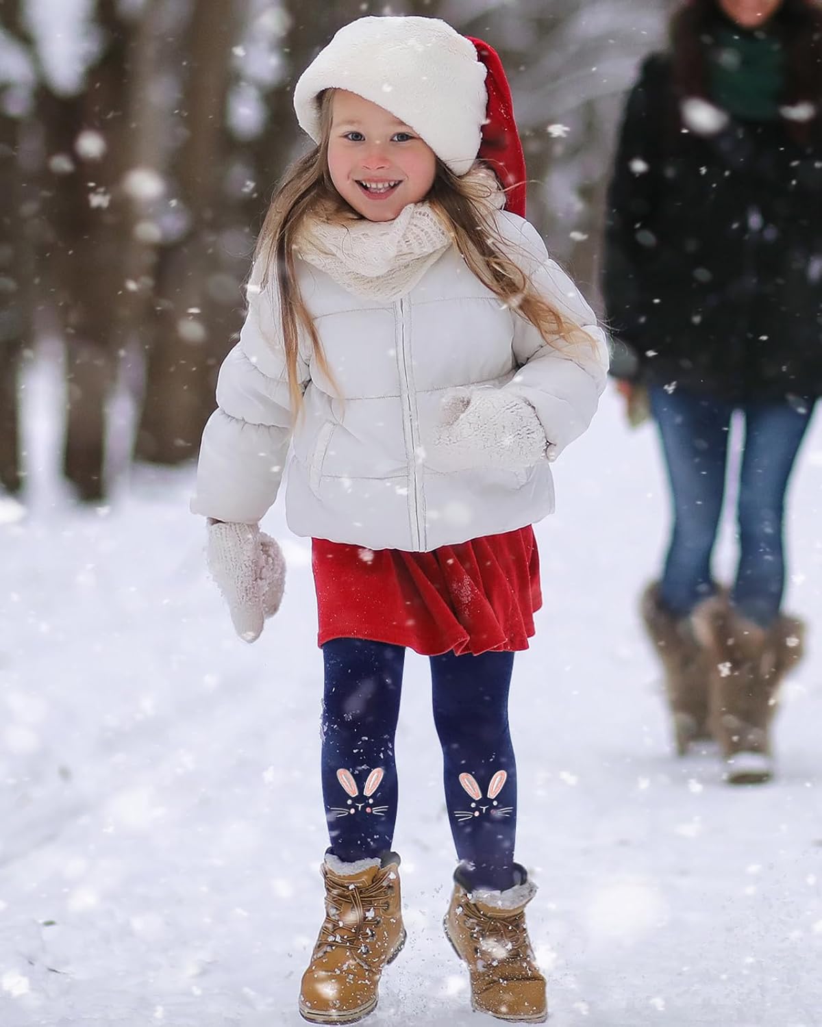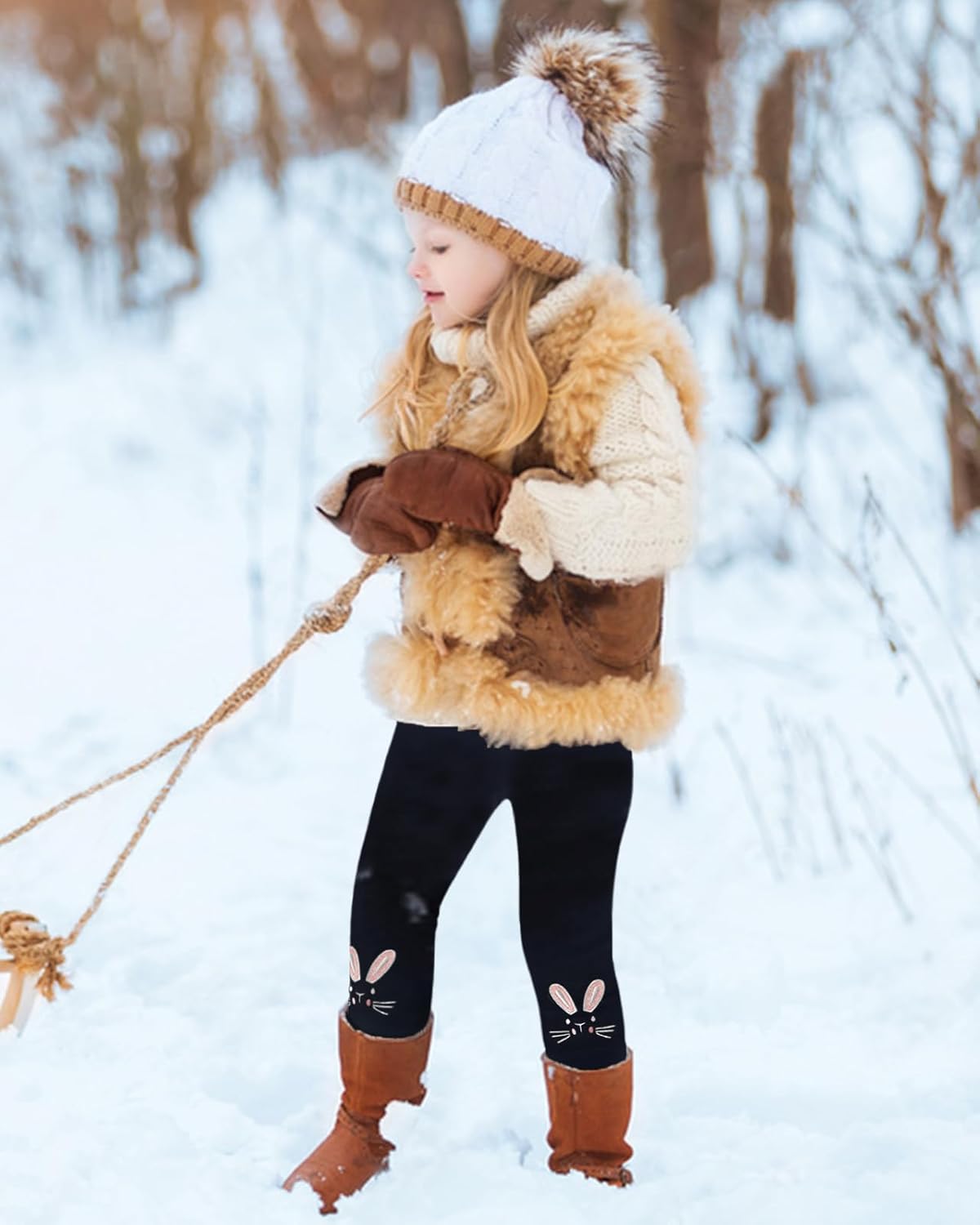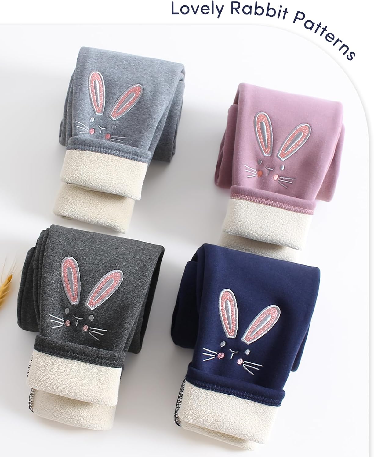 Domee Girls' Leggings Lined Thermal Trousers Warm Winter Cotton Embroidered Rabbit