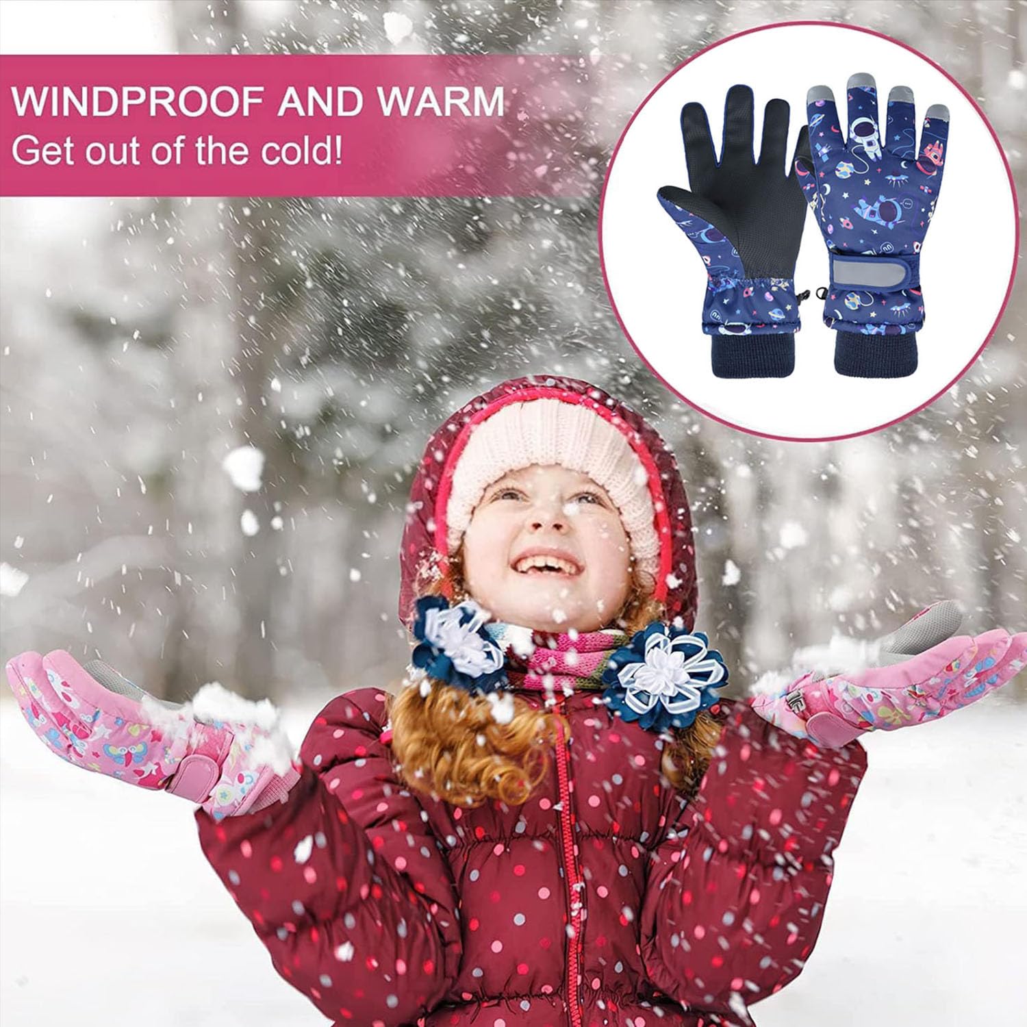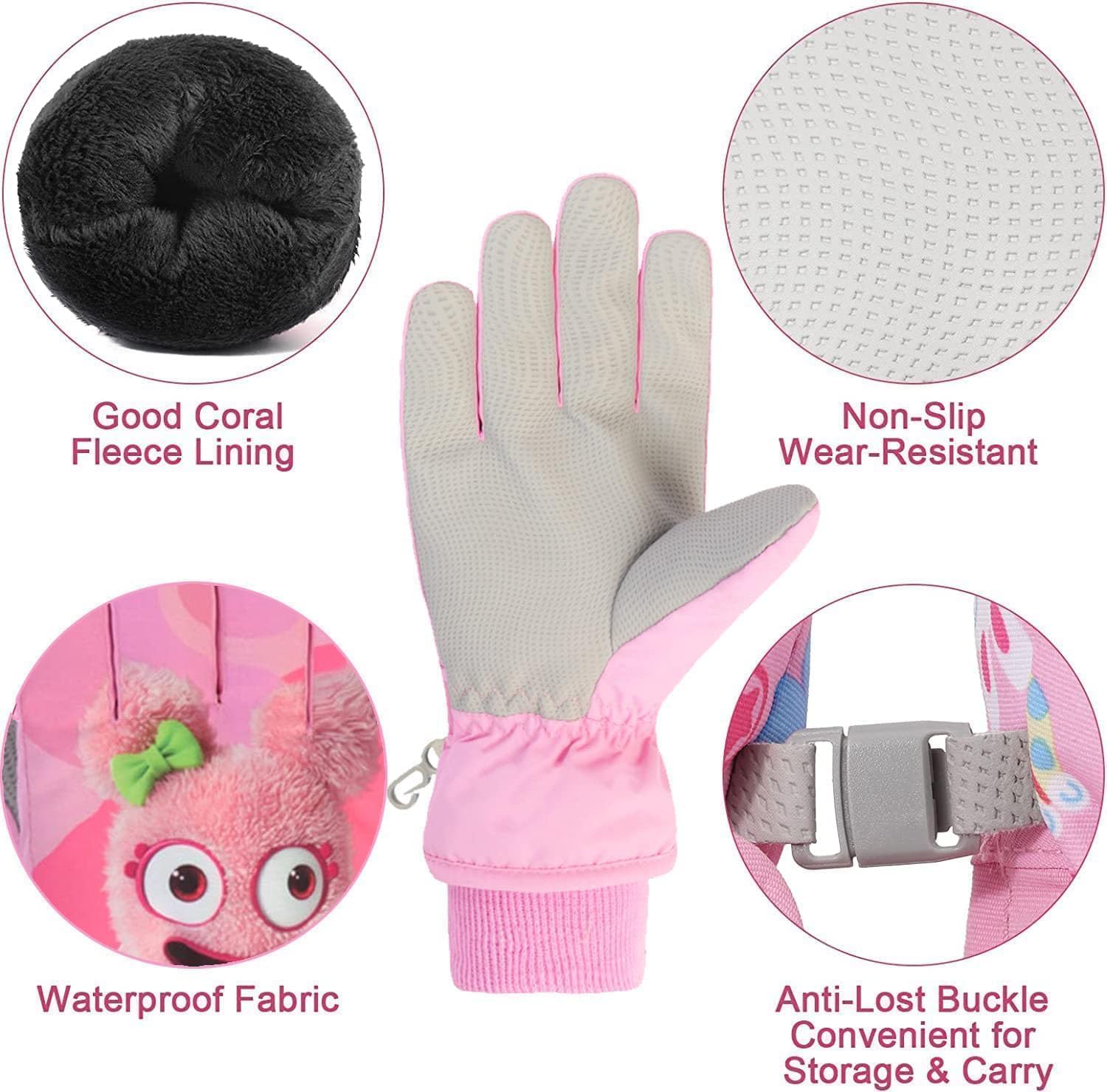 FAYHIJUN Children's Winter Snow Gloves Ski Gloves for 1-13 Years Girls Boys PU Palm Waterproof Windproof Warm Fleece Winter Gloves Cycling Gloves