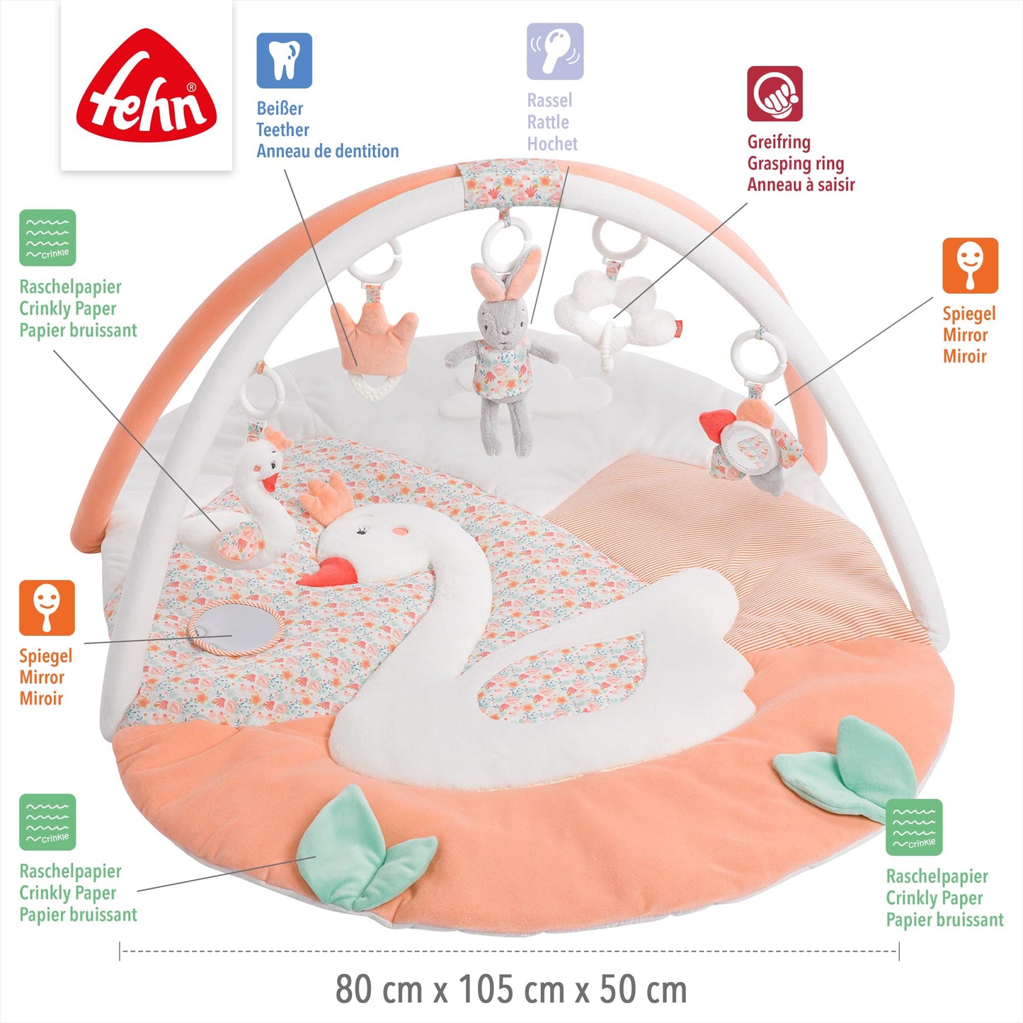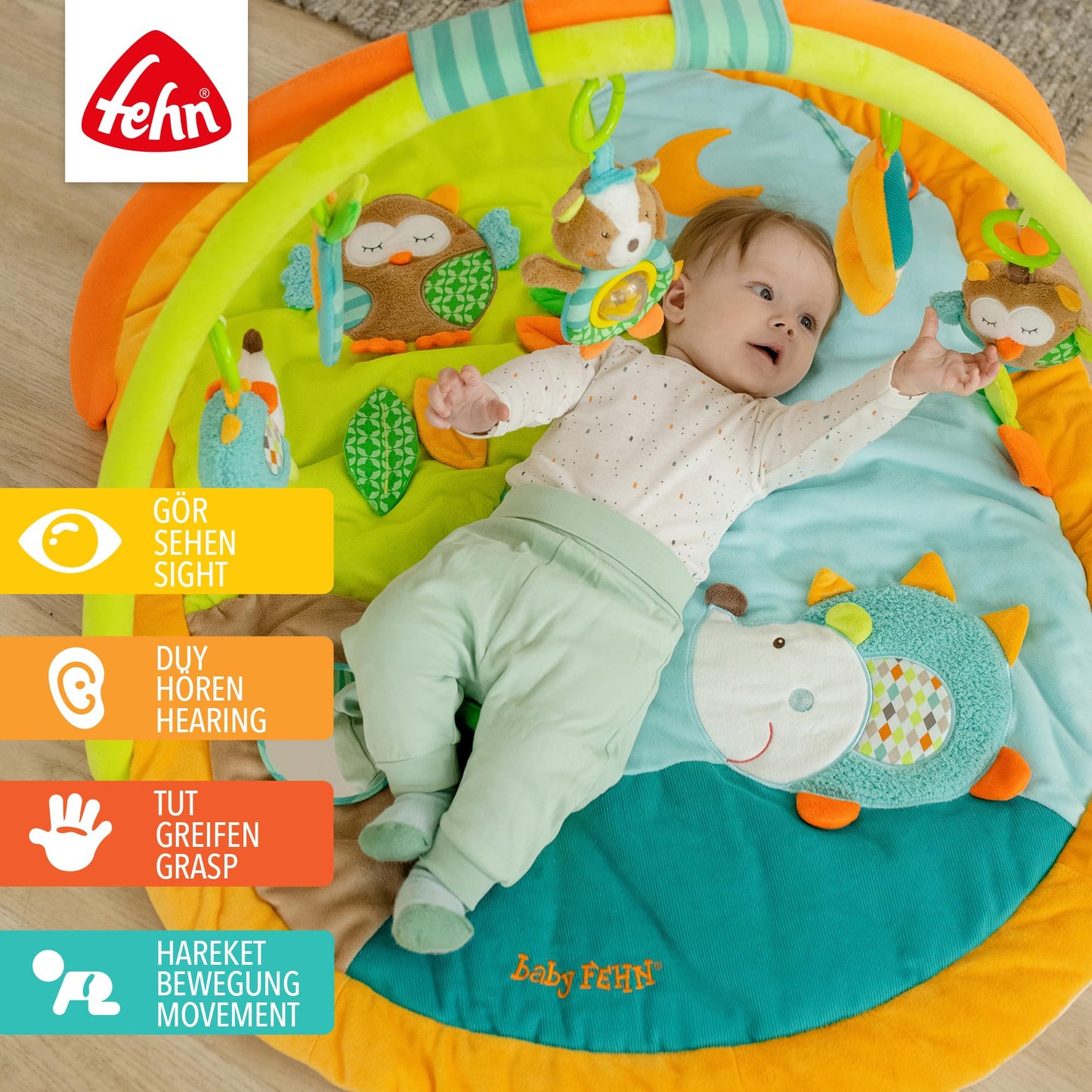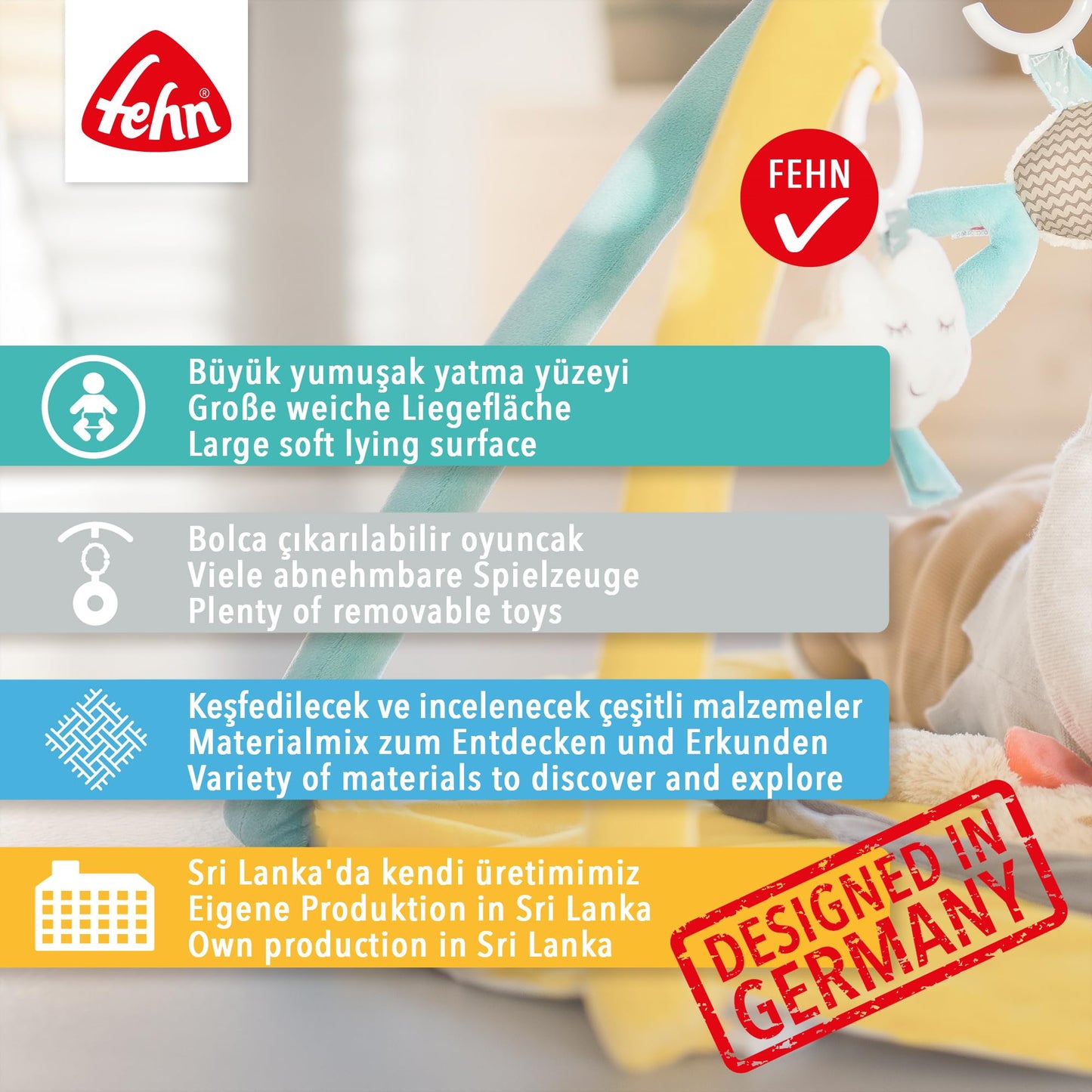 Fehn 3-D-Activity-Decke Spielbogen Peru – Baby Krabbeldecke mit 5 abnehmbaren Spielzeugen zum Greifen – Spieldecke für Babys und Kinder ab 0+ Monaten – Krabbelmatte als Geschenk zur Geburt