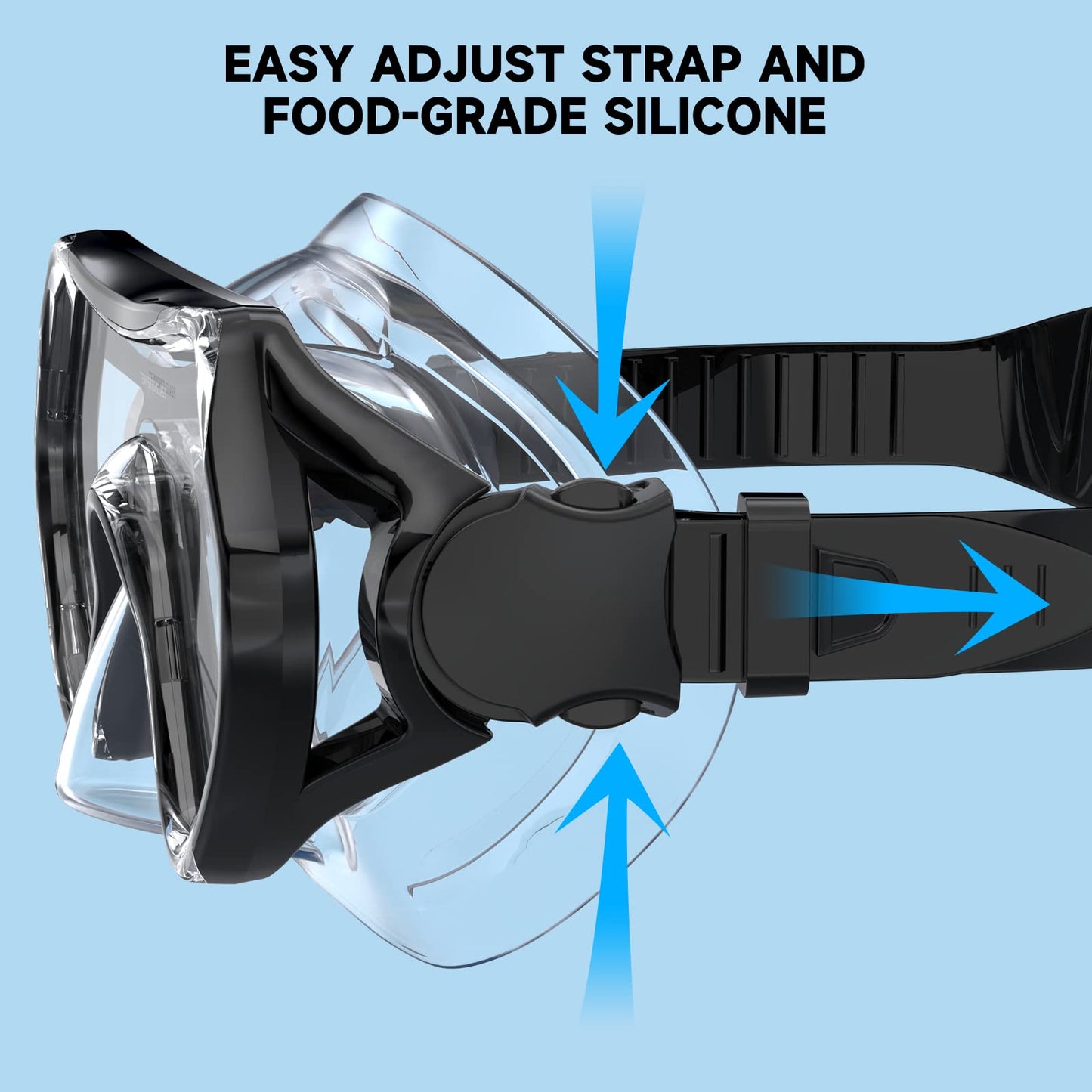 - One-piece tempered glass: children's diving goggles are made of advanced thick tempered glass, which has good shock resistance and chip resistance, making the children's diving masks stronger and safer to use. Ultra-clear, thickened, tempered glass with safety film that can withstand various deep water pressures when swimming. (Do not throw the diving masks on the floor or jump into the water with the diving goggles so that the glass does not break)