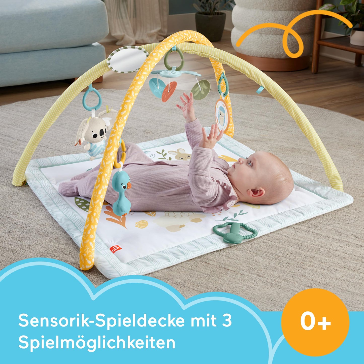 Fisher-Price Tierfreunde Kontrast-Spieldecke, Spielbogen, mit Musik und Licht, Krabbeldecke für Baby, zum Spielen im Bauchlage, Baby Ausstattung, ab Geburt, HPF39
