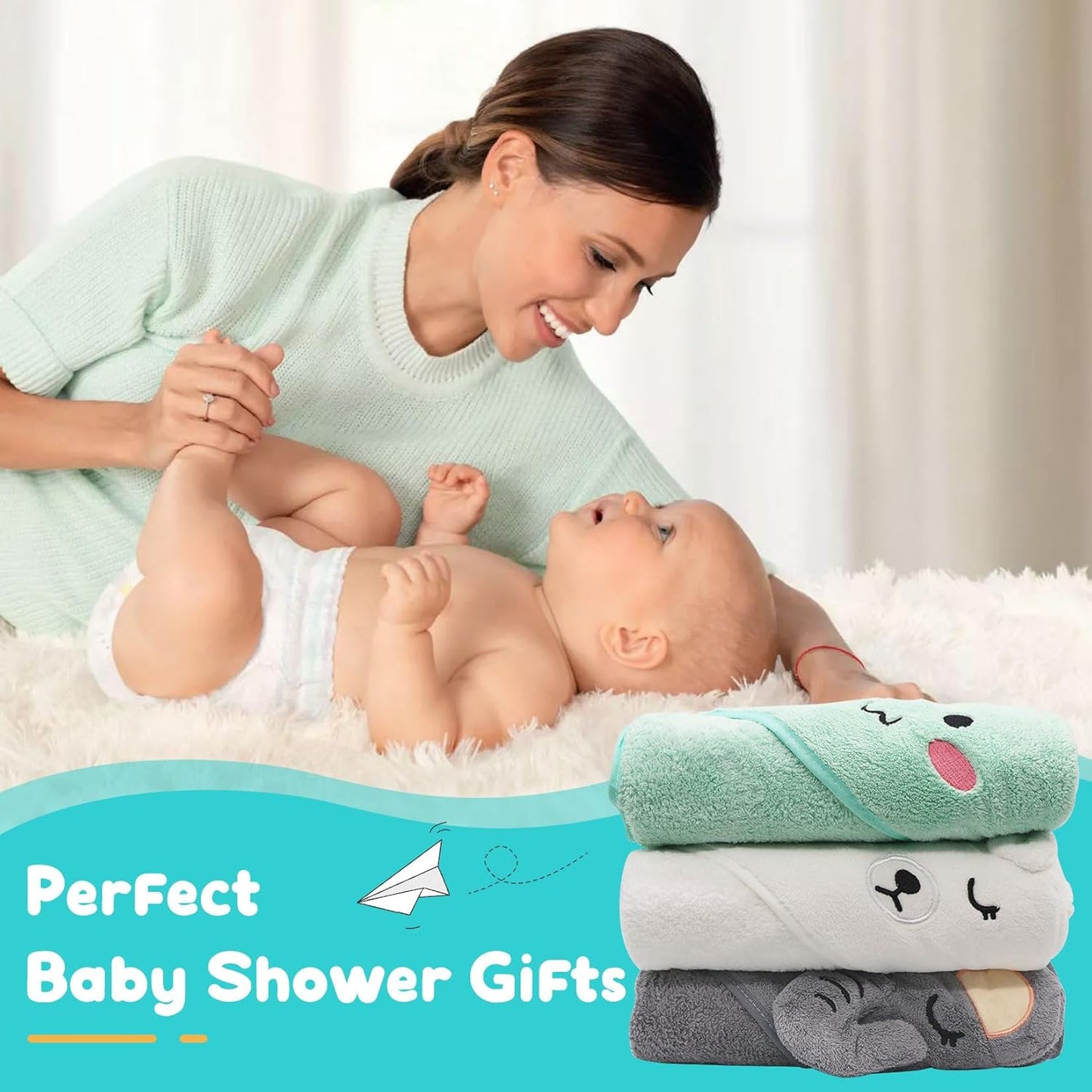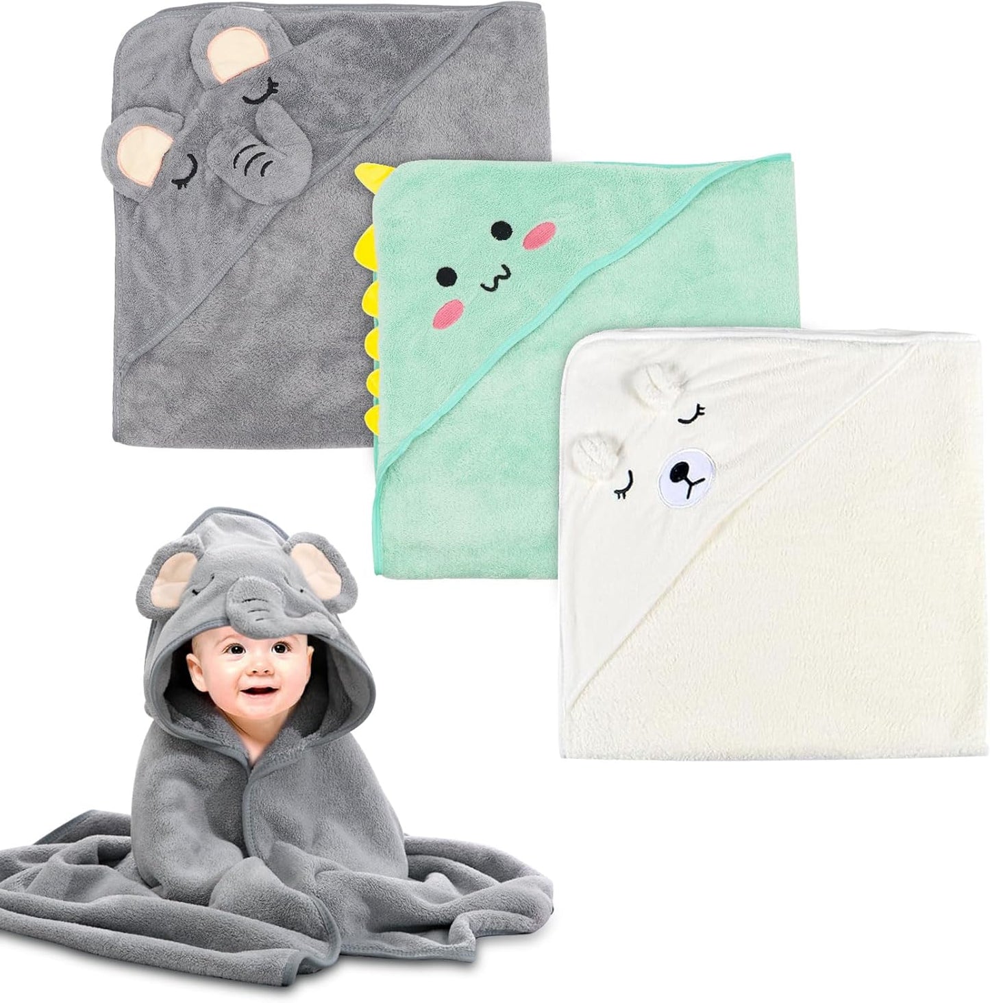 Forhandy Baby Hooded Towel, Pack of 3, Baby Towel Hood 80 x 80 cm, Baby Towel with Hood, Coral Fleece, Soft & Super Absorbent, Baby Bath Towel for Babies and Toddlers