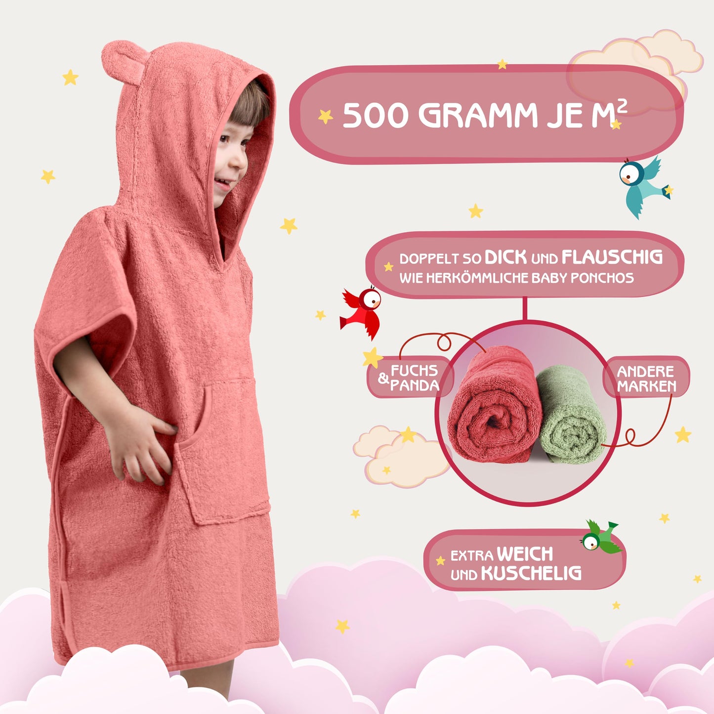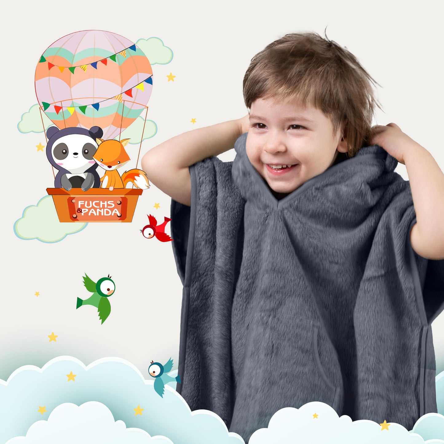 • 🐼 𝐁𝐄𝐒𝐎𝐍𝐃𝐄𝐑𝐒 𝐅𝐋𝐀𝐔𝐒𝐂𝐇𝐈𝐆: Der Fuchs&Panda Kinder Poncho ist deutlich flauschiger (500GSM) als ein gewöhnliches Baby Handtuch und durch die fluffige Bambuswolle extra weich und komfortabel. Die atmungsaktive Bambusfaser kühlt angenehm im Sommer und wärmt wohlig im Winter