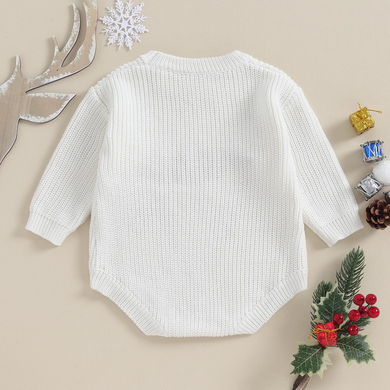 Geagodelia Knitted Christmas Romper Baby Girl Boy Christmas Jumper My First Christmas Newborn Baby Jumper Romper Bodysuit Christmas Jumper