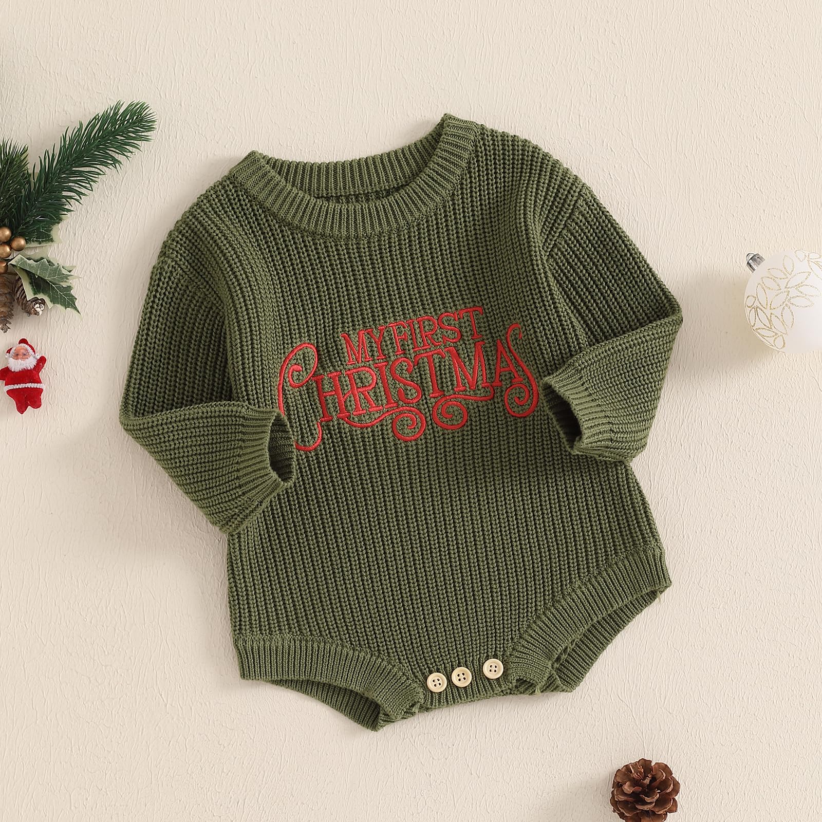 Knitted Christmas Romper Baby Girl Boy Christmas Jumper My First Christmas Newborn Baby Jumper Romper Bodysuit Christmas Jumper