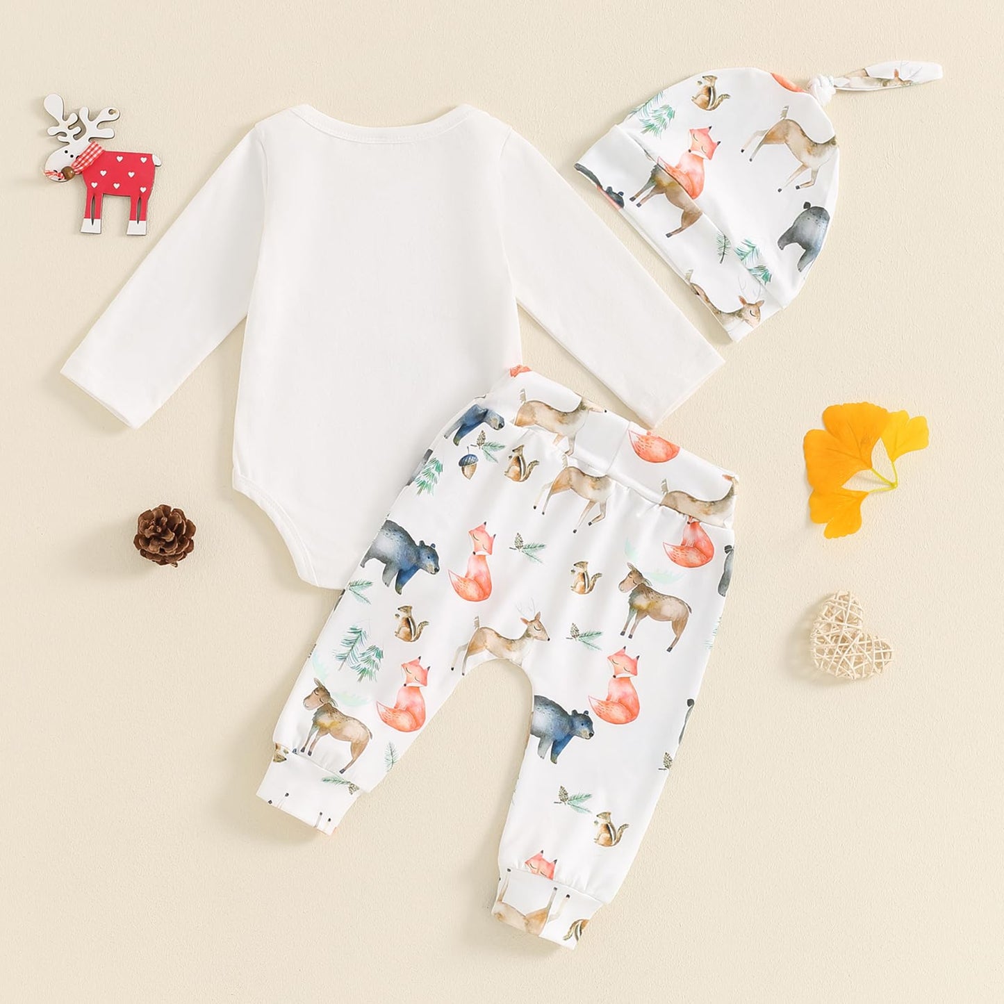 • DESIGN: Baby Kleidung Set mit Mütze, Baby Erstausstattung Neugeborene Junge Kleidung Set, langarmer Body und Hose Baumwolle Neugeborene Baby Kleidung Set, Winter Baby Kleidung für Neugeborene Junge, passende Hose mit elastischem Bund bietet optimalen Tragekomfort.