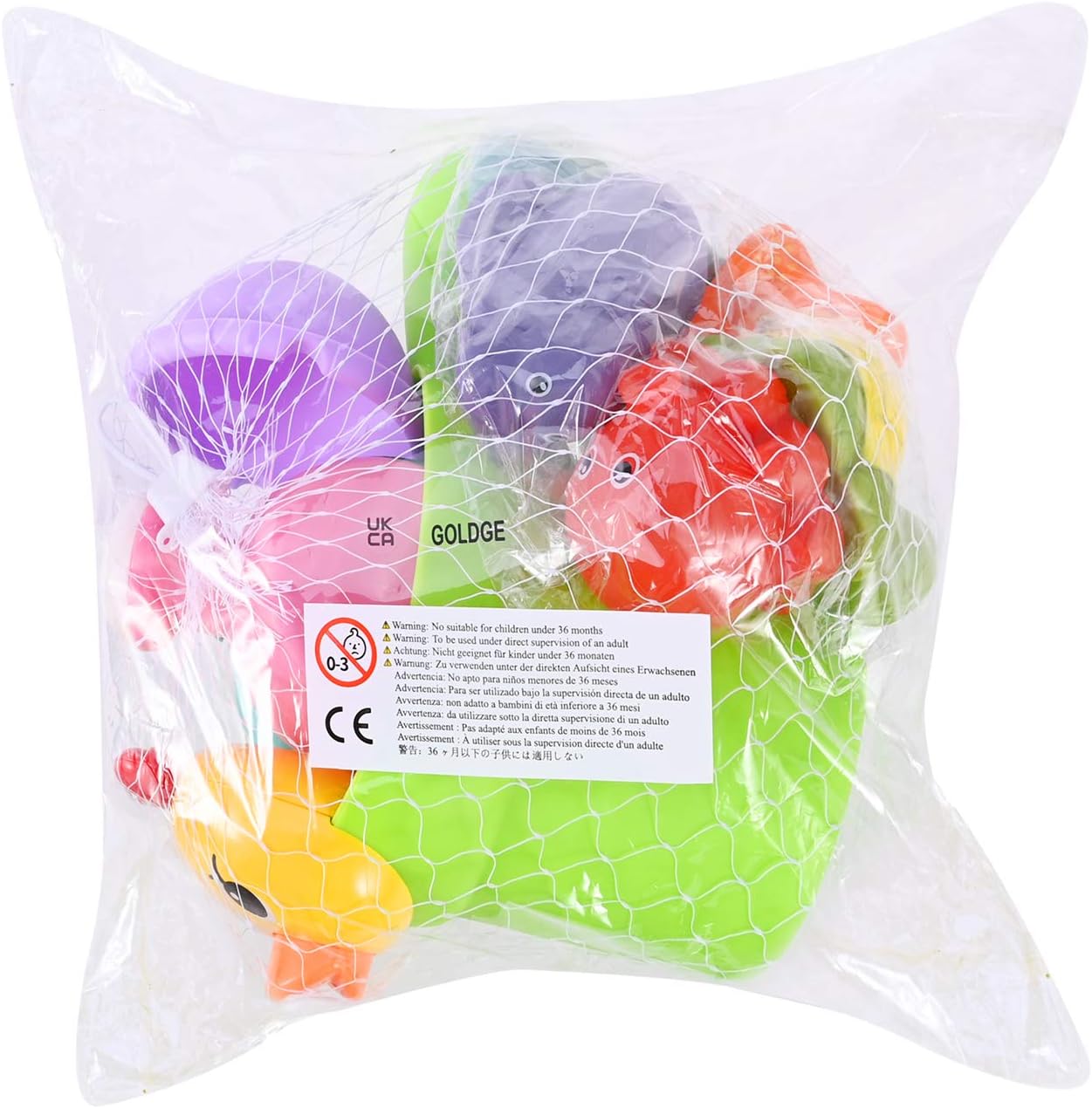 Complete accessories: bath toy baby has bright colours, life lake animal pictures, different styles, duck sprinkler x 1 + whale water wheel x 1 + portable water bottle x 1 + water spoon x 1 + squid x 1 + starfish x 1 + sea turtle x 1 + sea turtle x 1 + sea lion x 1 + whale x 1 + shark. Complete accessories can recognise children while playing. Safe and safe: bath toy is made of environmentally friendly soft rubber vinyl material, contains no BPA, is non-toxic and very drip proof. Intimate and exquisite design: the rounded corners of water toys for the baby do not hurt your hands, it is easy to grip and the design is exquisite and cute. It is very suitable for children to play in the water, unusual water, interaction with parent child, etc. and create a pleasant bath time for the baby. Squid and starfish change their colour. They change their colour above 40 degrees, sea turtles and sea lions wear bibi devices and whales and sharks spray water not a bibi device. Note: children should be used under adult supervision. Goldge 10 pieces bath toys for babies from 1 year, bath toys, water toys, baby with BPA, beautiful water splashes for baby bath, gift.