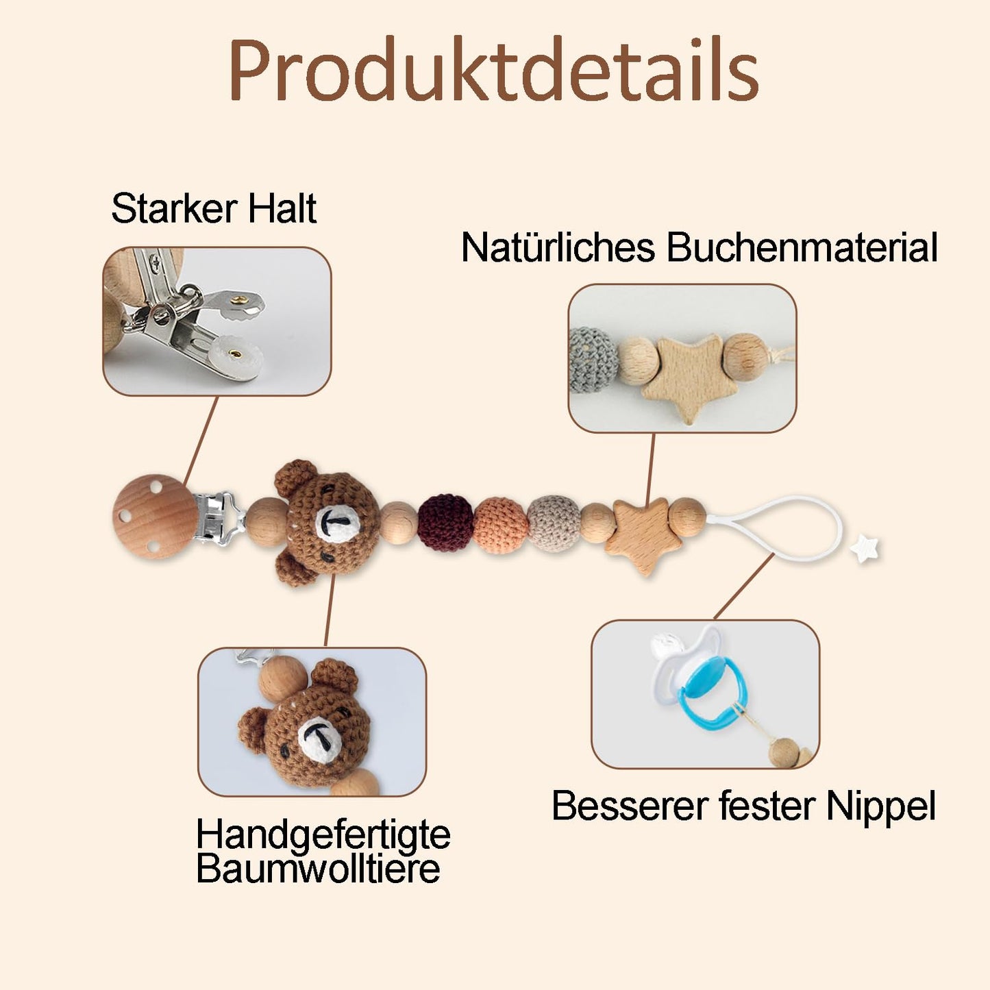• Exquisites Design: Unsere gewebte Bären-Schnullerkette ist aus weichem Baumwollgarn handgefertigt und fördert durch ihre einzigartige Form und leuchtenden Farben die visuelle Wahrnehmung und die sensorischen Fähigkeiten des Babys