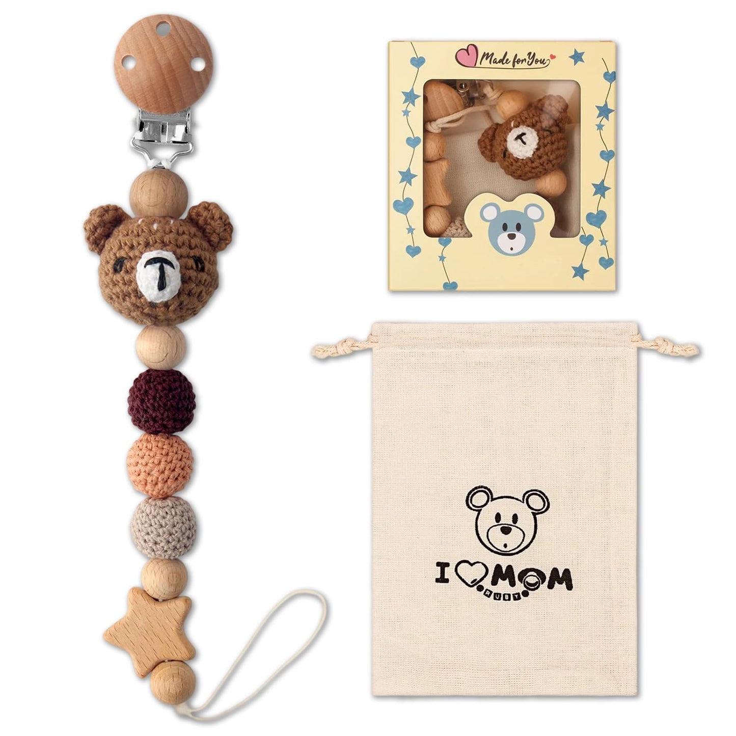 • Hochwertiges Material: Die Schnullerkette besteht aus hochwertigem Holz und gestrickter Wolle, ist ungiftig und geruchlos, sicher und ungefährlich für Babys und kann bedenkenlos verwendet werden. Das Produkt enthält eine Aufbewahrungstasche aus Baumwolle und Leinen zum einfachen Tragen