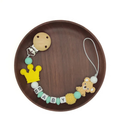 Diese handgemachte Schnullerkette besteht aus Silikon und Holz und ist perfekt für dein Baby geeignet. Das Material ist natürlich und sicher für das Kauen und Zahnen deines Babys. Mit der Schnullerkette bleibt der Schnuller deines Babys immer in Reichweite und kann nicht verloren gehen. Eine praktische und stylische Lösung für Eltern und Babys.
