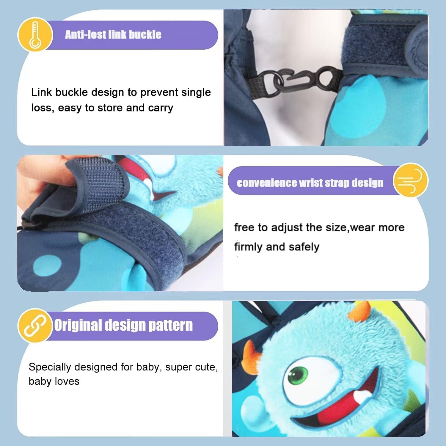 • The mittens are equipped with Velcro and buckles to adjust the wrist and achieve a perfect fit. The extended knitted cuffs can be tucked under the sleeves of children's jackets and coats to provide extra protection and prevent snow and cold air from entering.