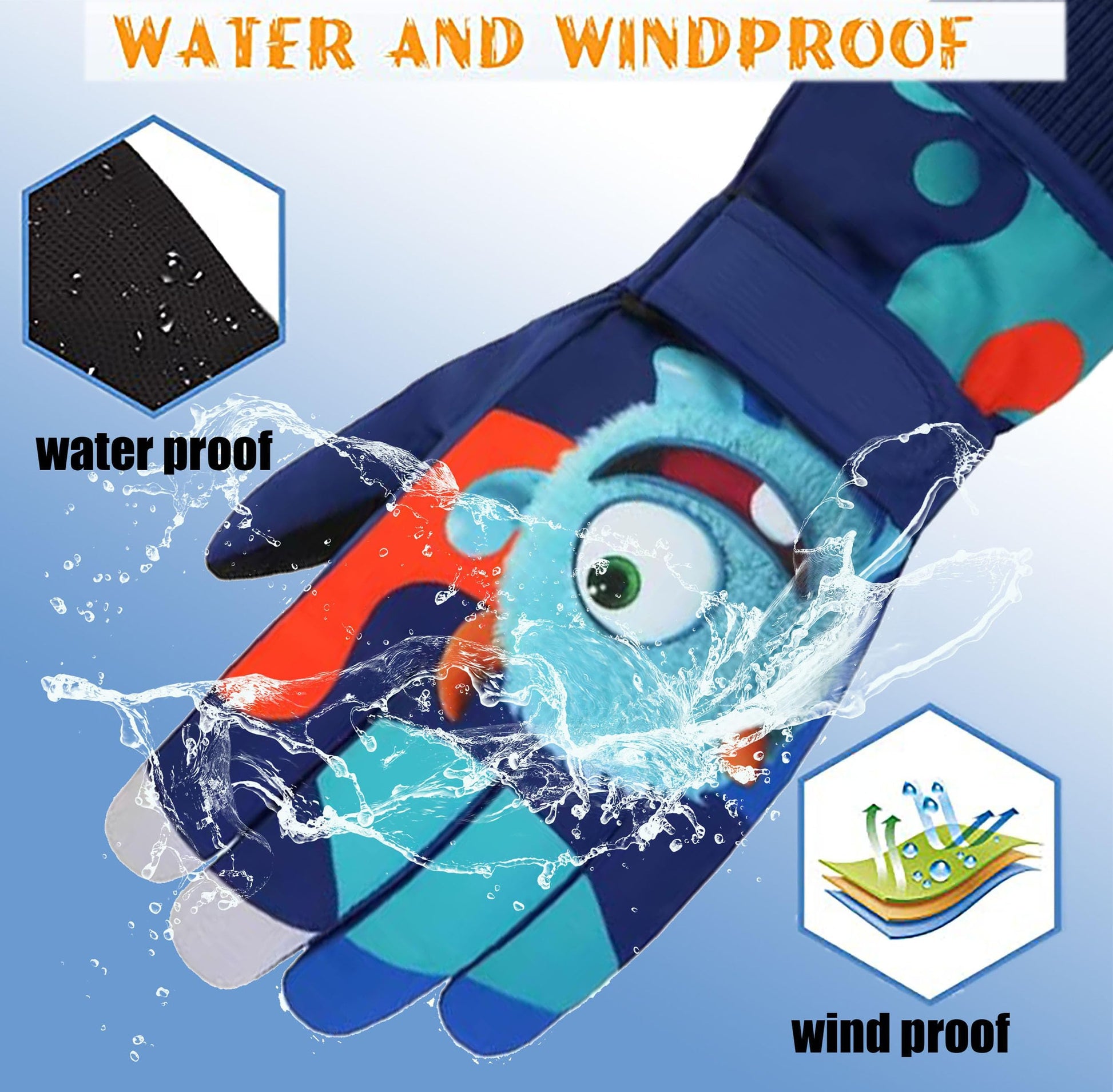 HNGEMSY Children's Winter Snow Gloves Ski Gloves for 2-13 Years Girls Boys PU Palm Waterproof Windproof Warm Fleece Winter Gloves