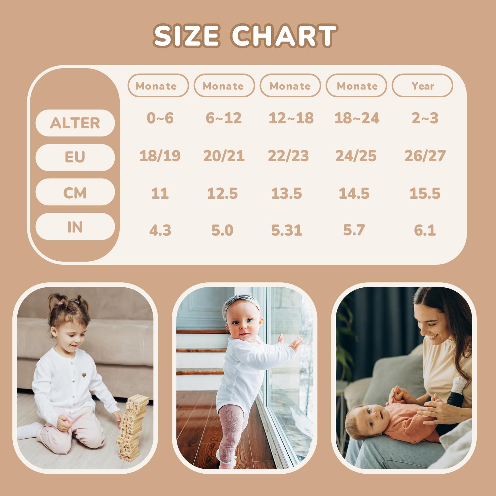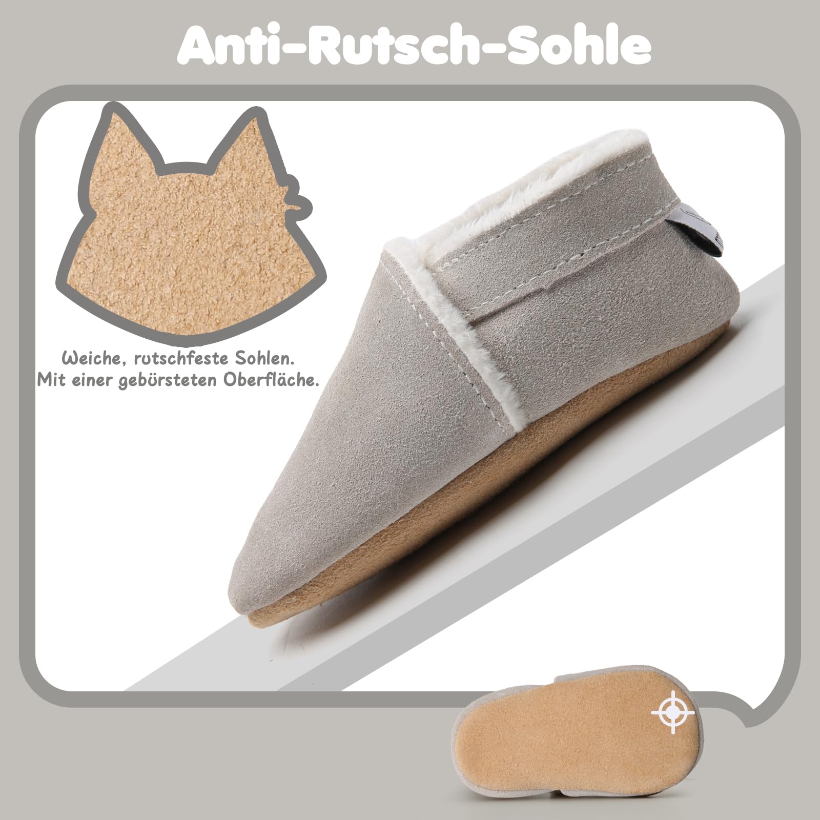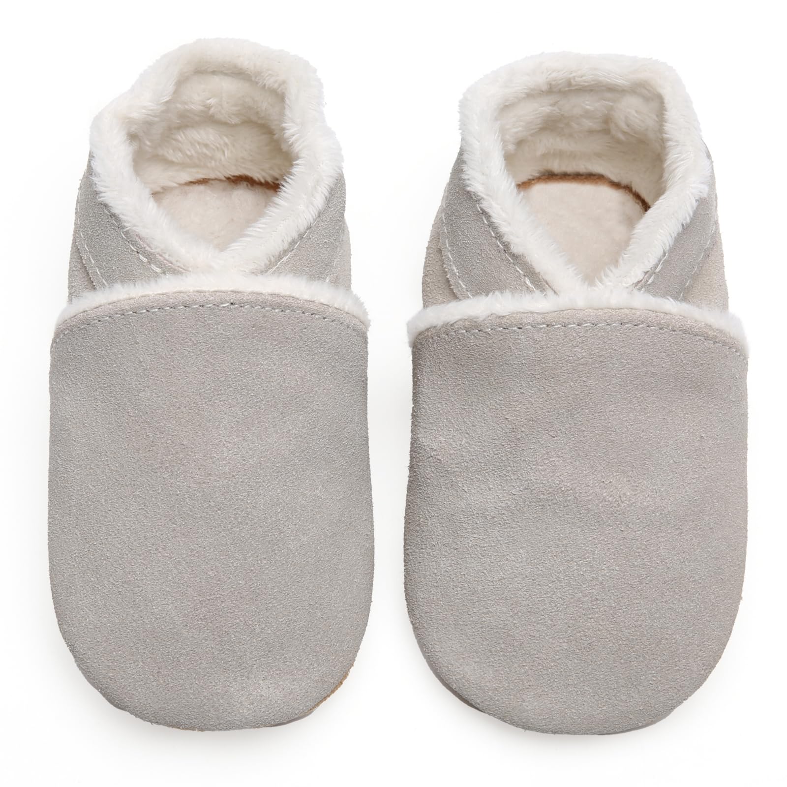 The lightweight, non-slip suede sole gives a firm grip on slippery floors and gives your baby the feeling of walking barefoot