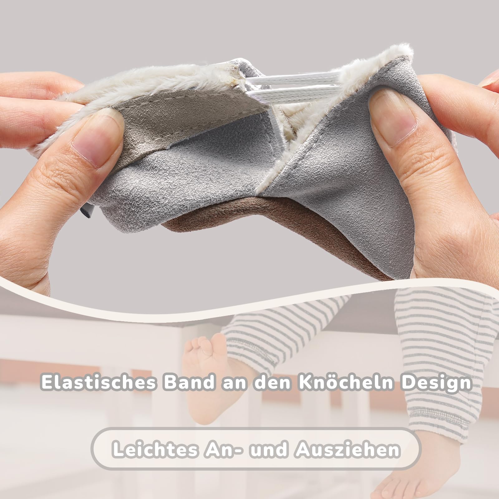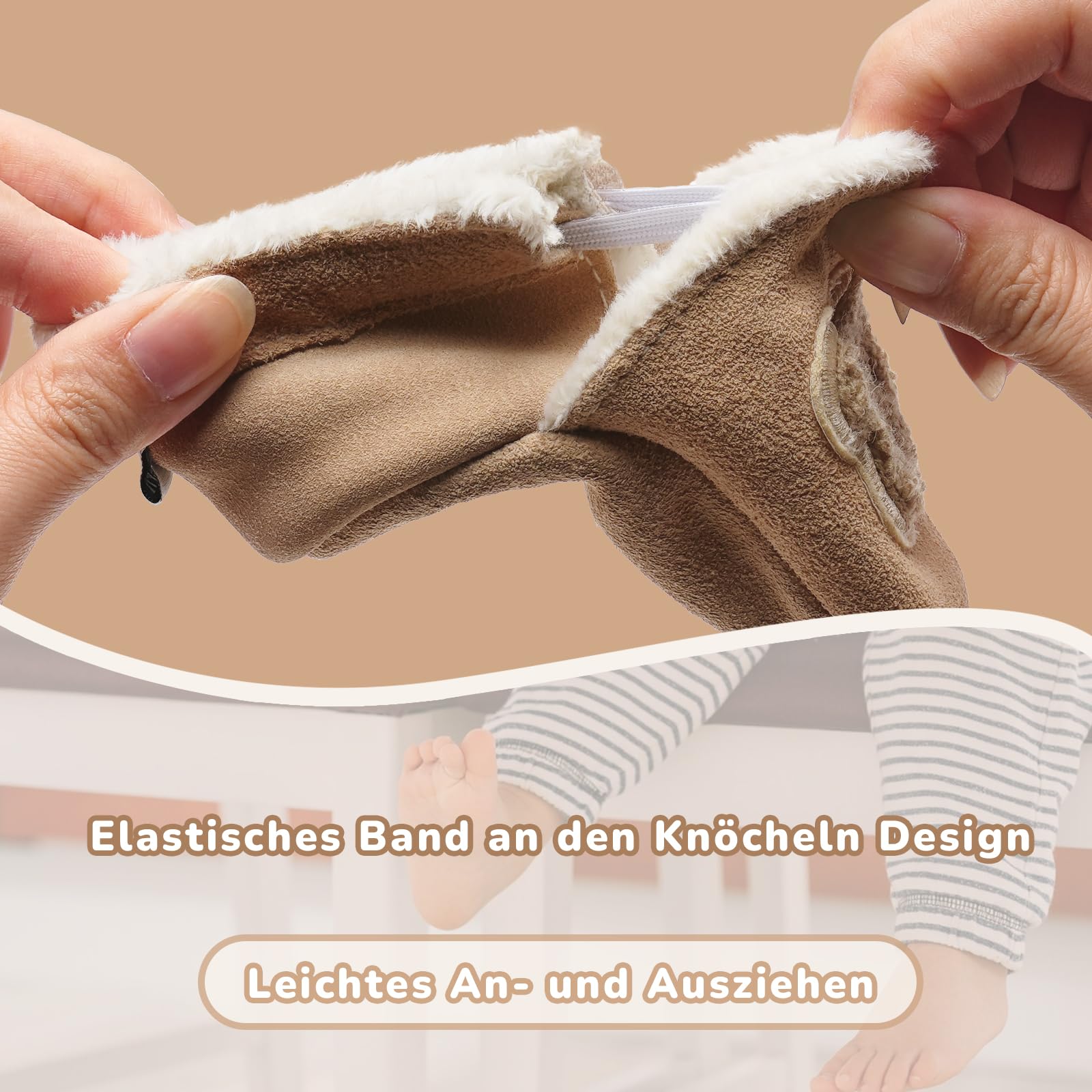 Baby crawling shoes with plush lining keep baby's little feet warm in cold winter