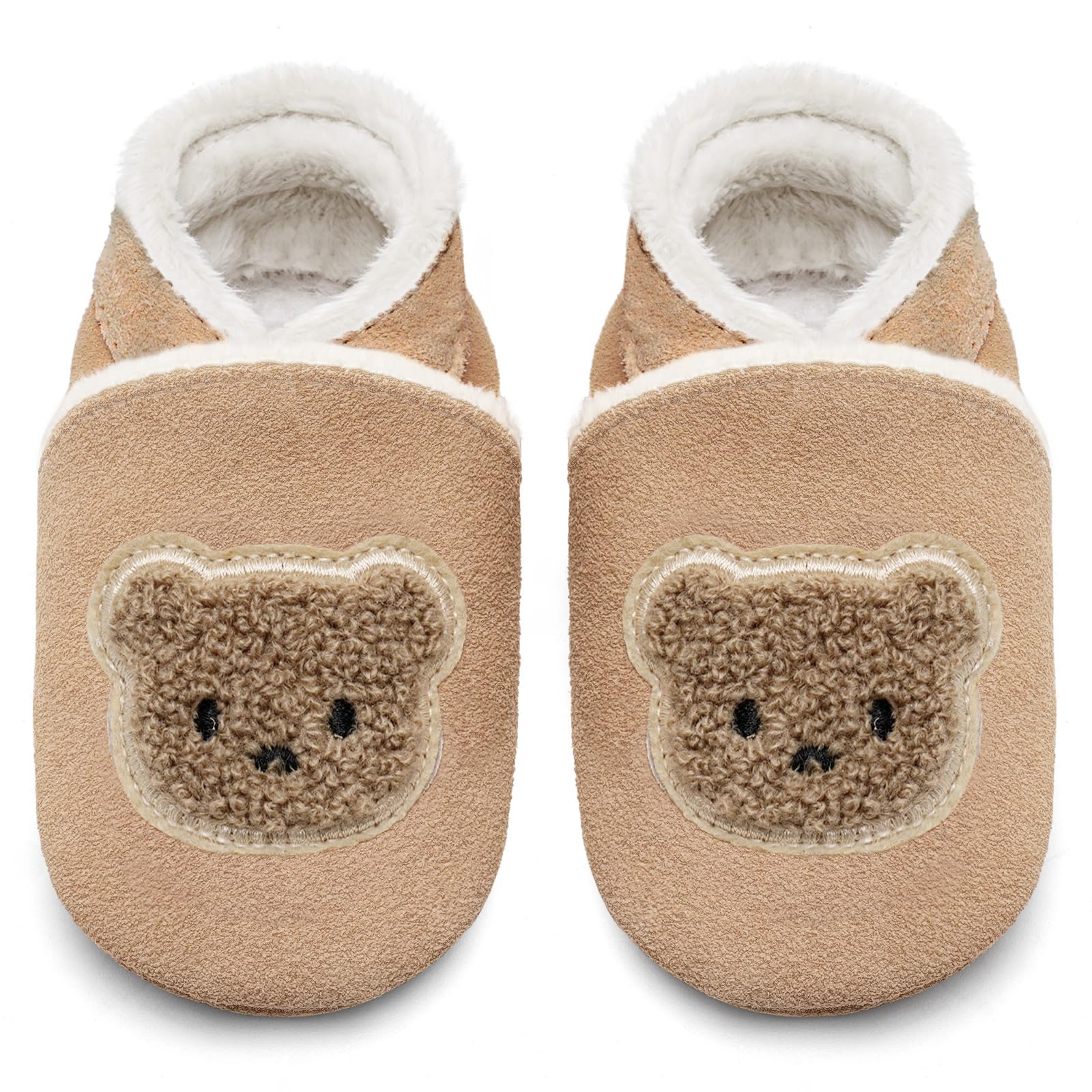 • IceUnicorn crawling shoes baby winter crawling shoes, lined plush slippers, first walking shoes, warm, soft leather, (grey bear p, 6–12 months).