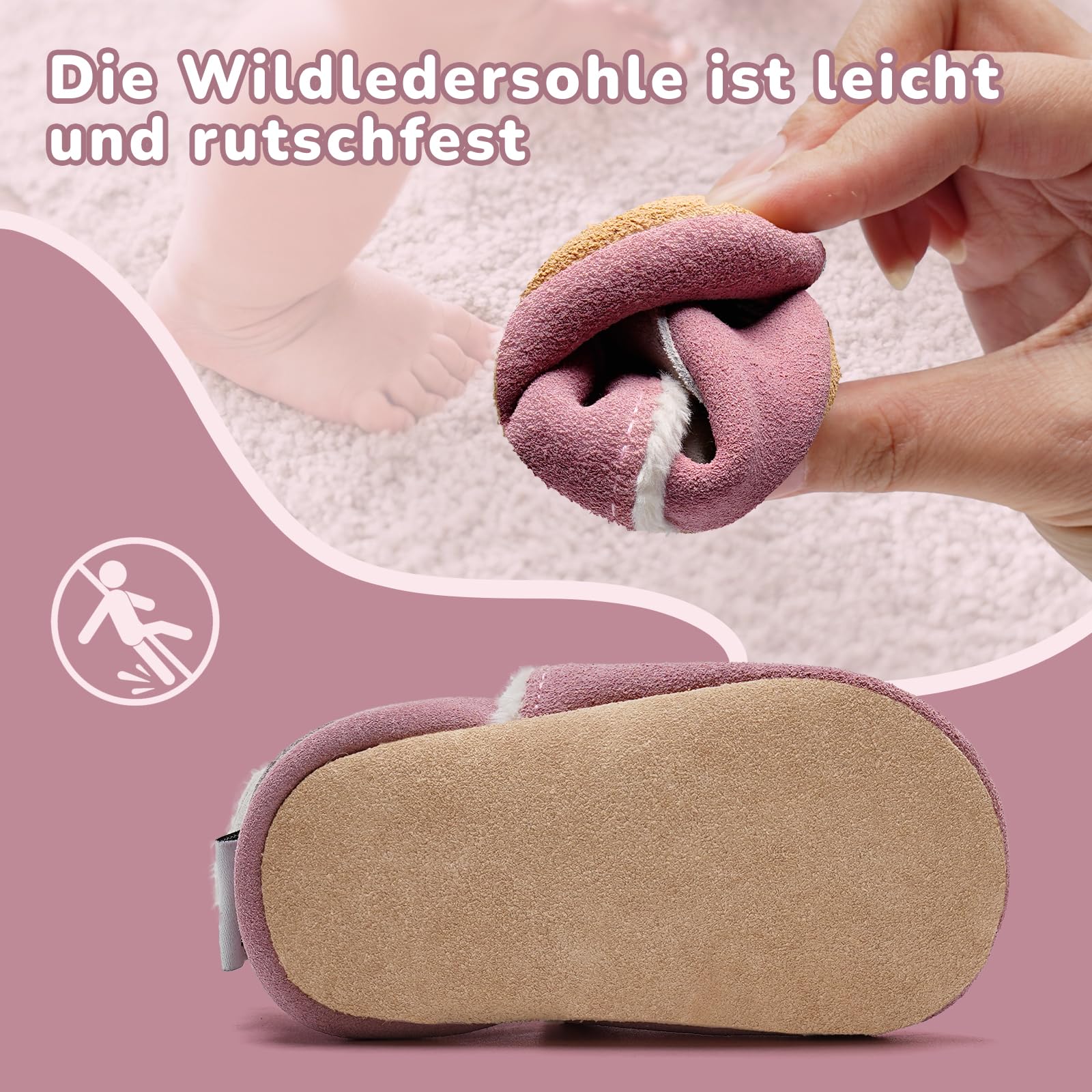 IceUnicorn Baby's Crawling Shoes, Winter First Walking Shoes, Baby Lined Leather Shoes, Soft Leather, Suede Soles, Leather Slippers